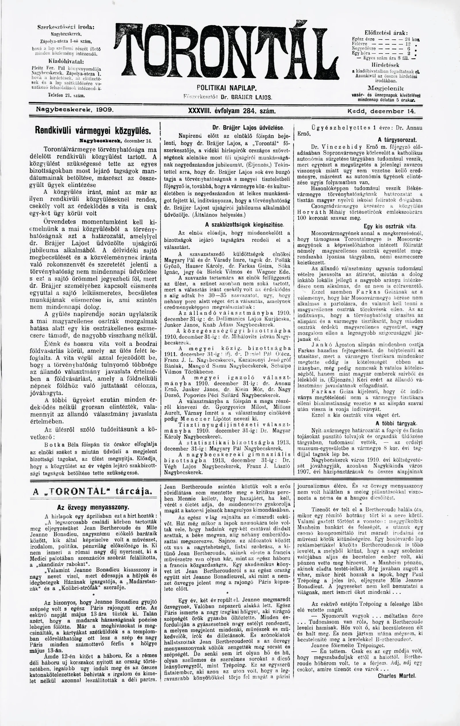Torontál, 38. évf. 1909. december 14. 284. sz.