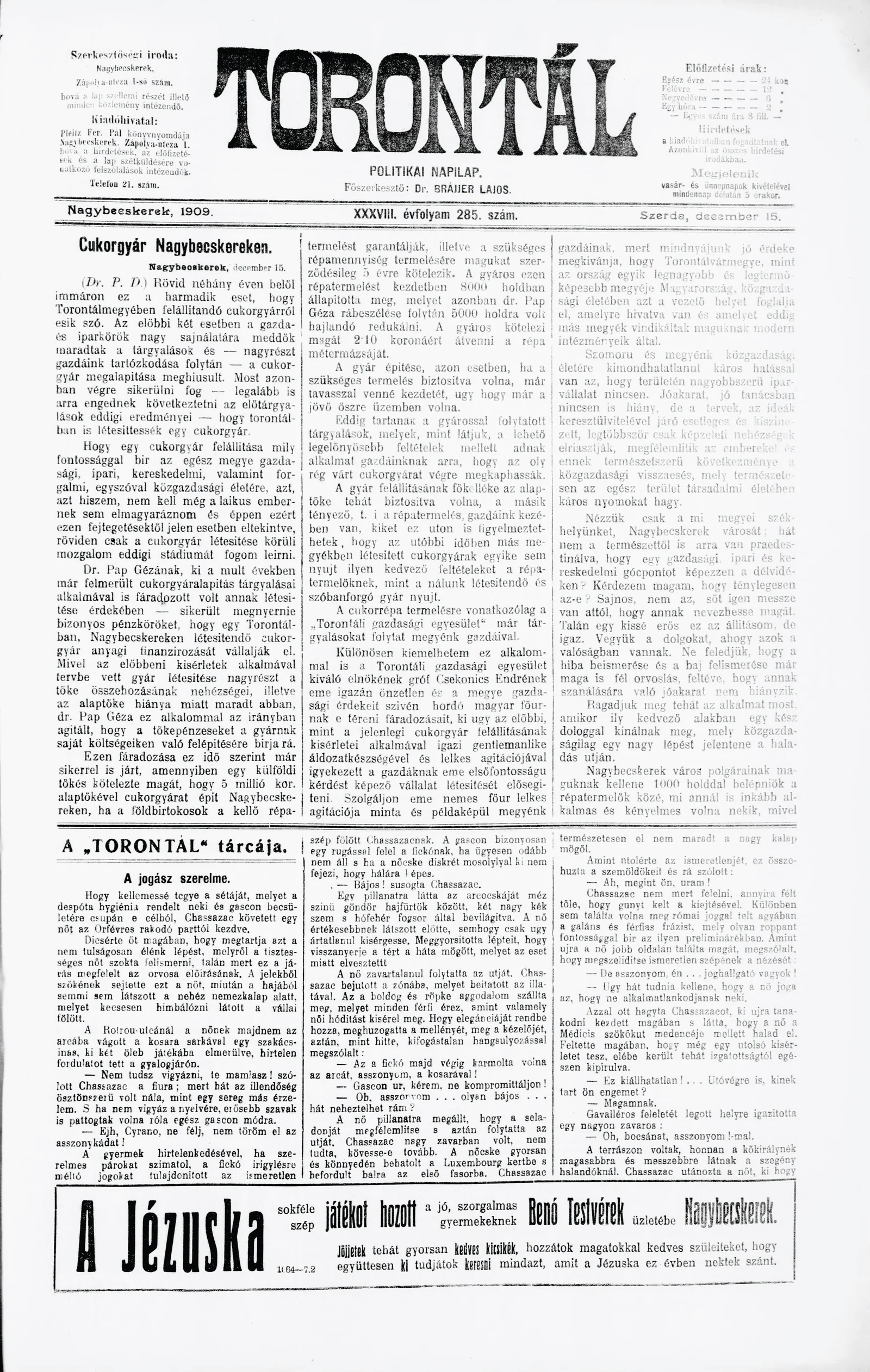 Torontál, 38. évf. 1909. december 15. 285. sz.