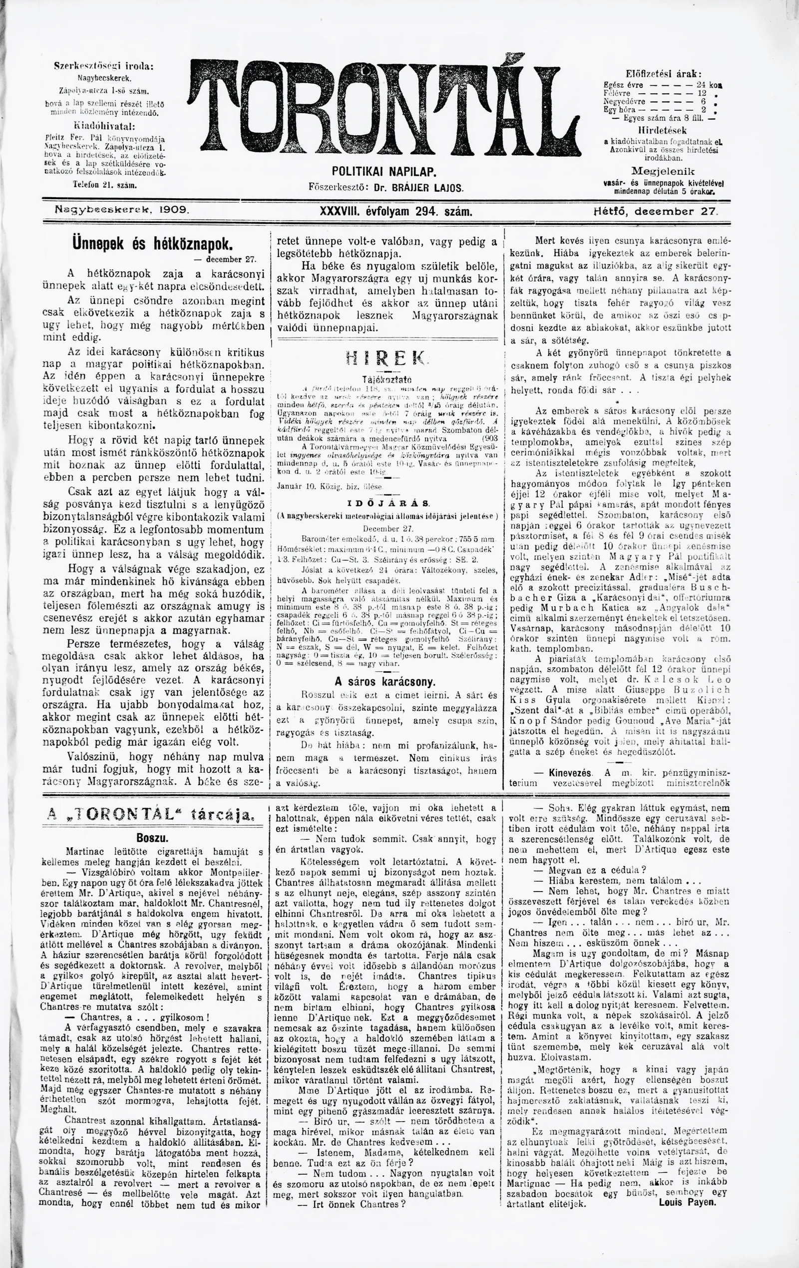 Torontál, 38. évf. 1909. december 27. 294. sz.