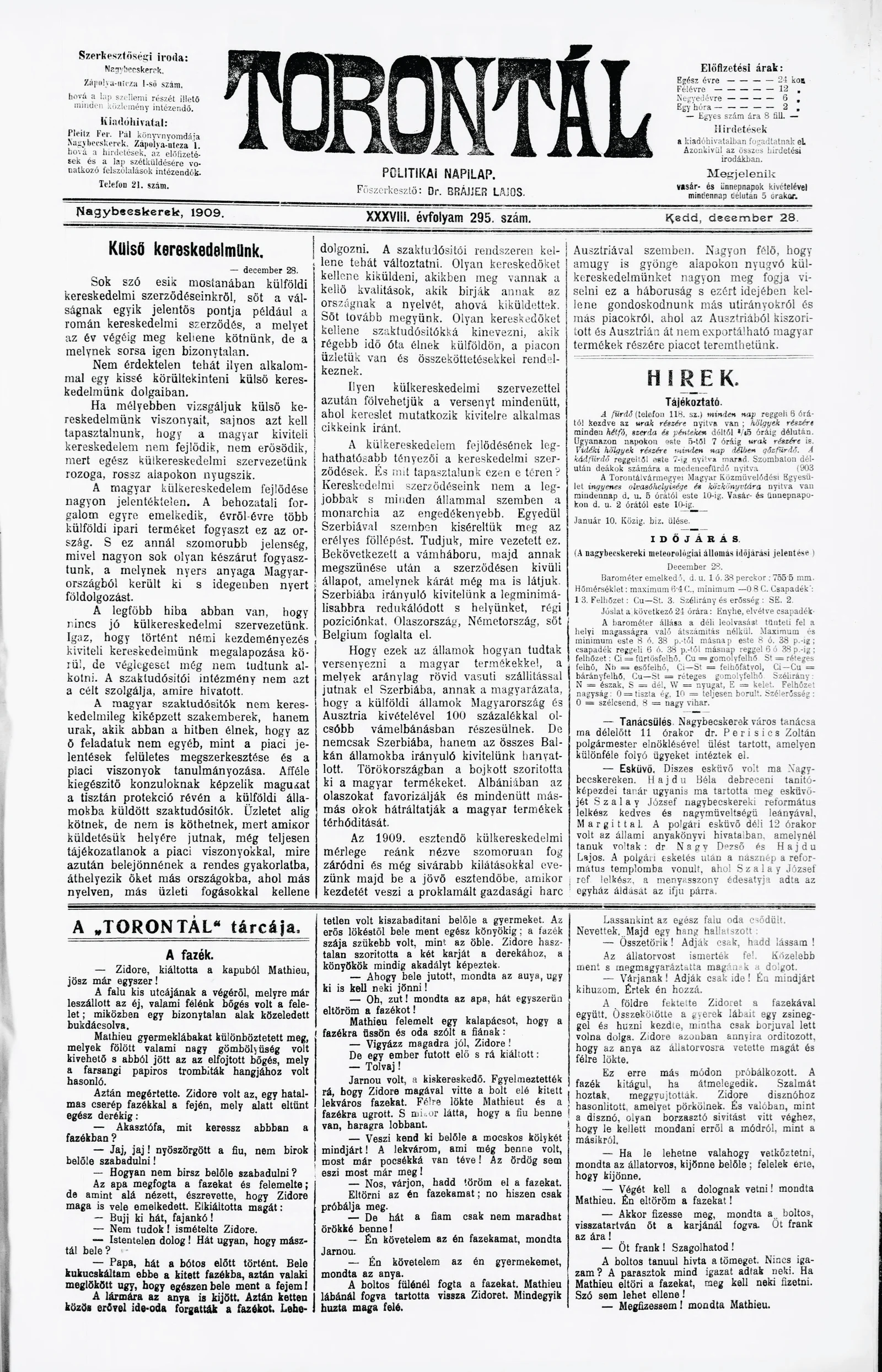 Torontál, 38. évf. 1909. december 28. 295. sz.