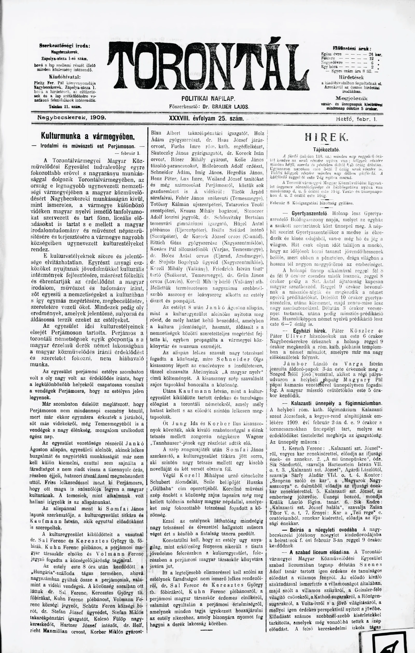 Torontál, 38. évf. 1909. február 1. 25. sz.