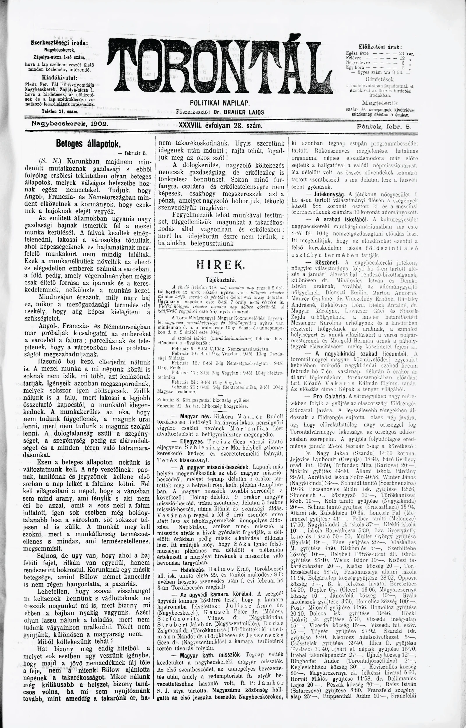 Torontál, 38. évf. 1909. február 5. 28. sz.