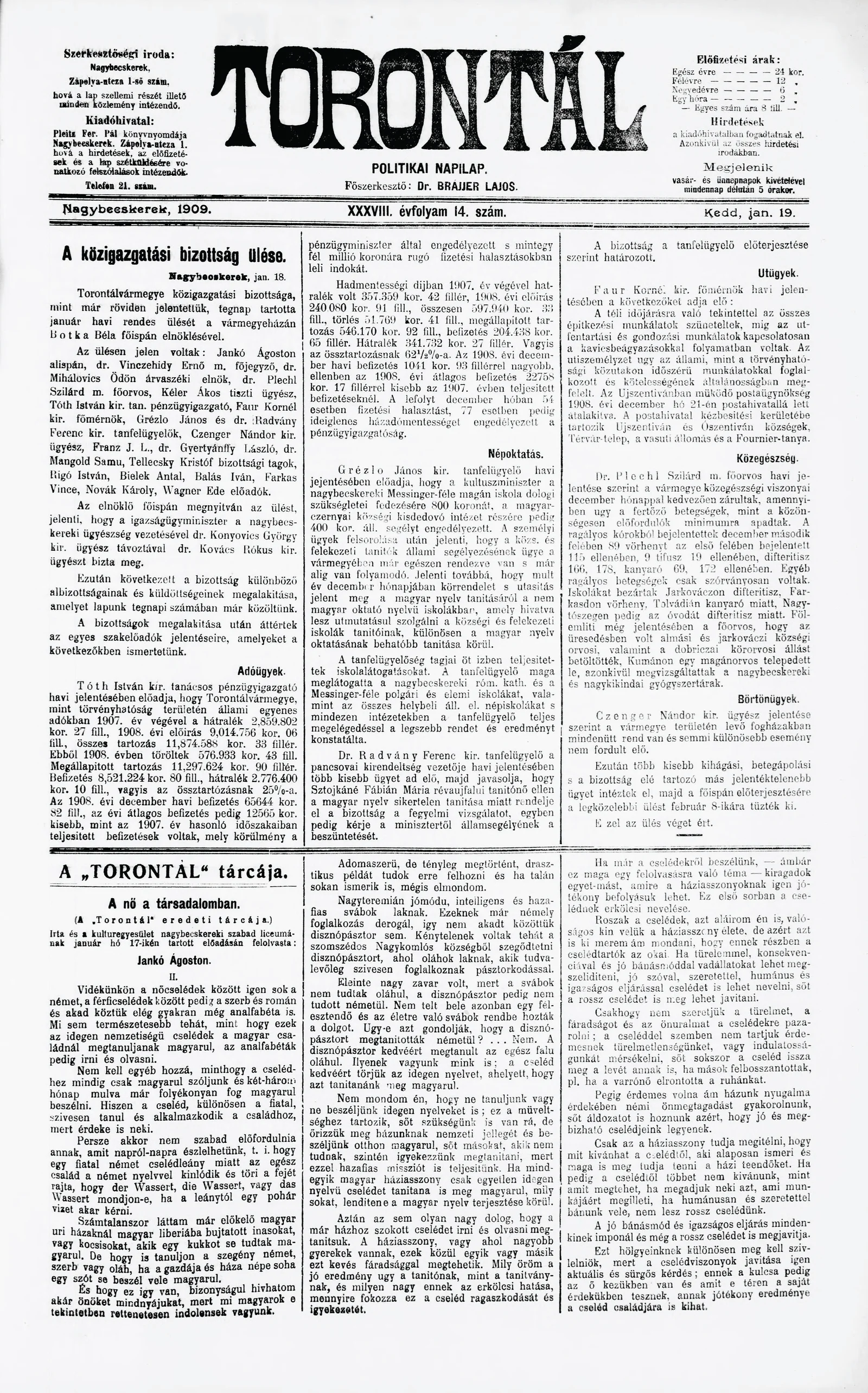 Torontál, 38. évf. 1909. január 19. 14. sz.