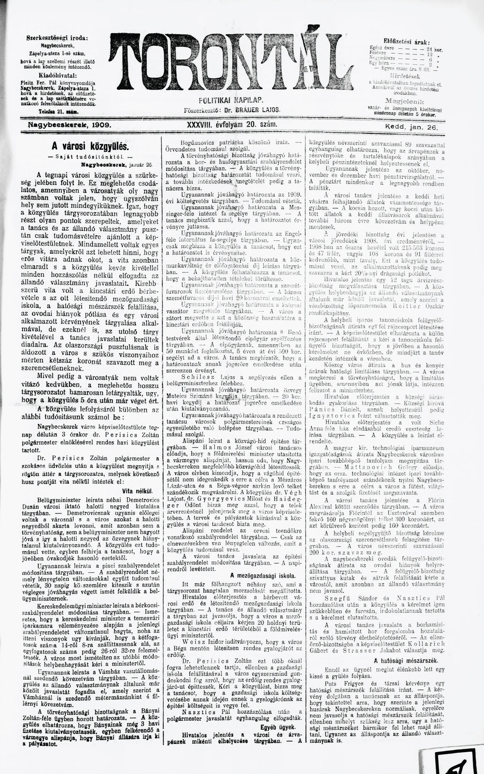 Torontál, 38. évf. 1909. január 26. 20. sz.