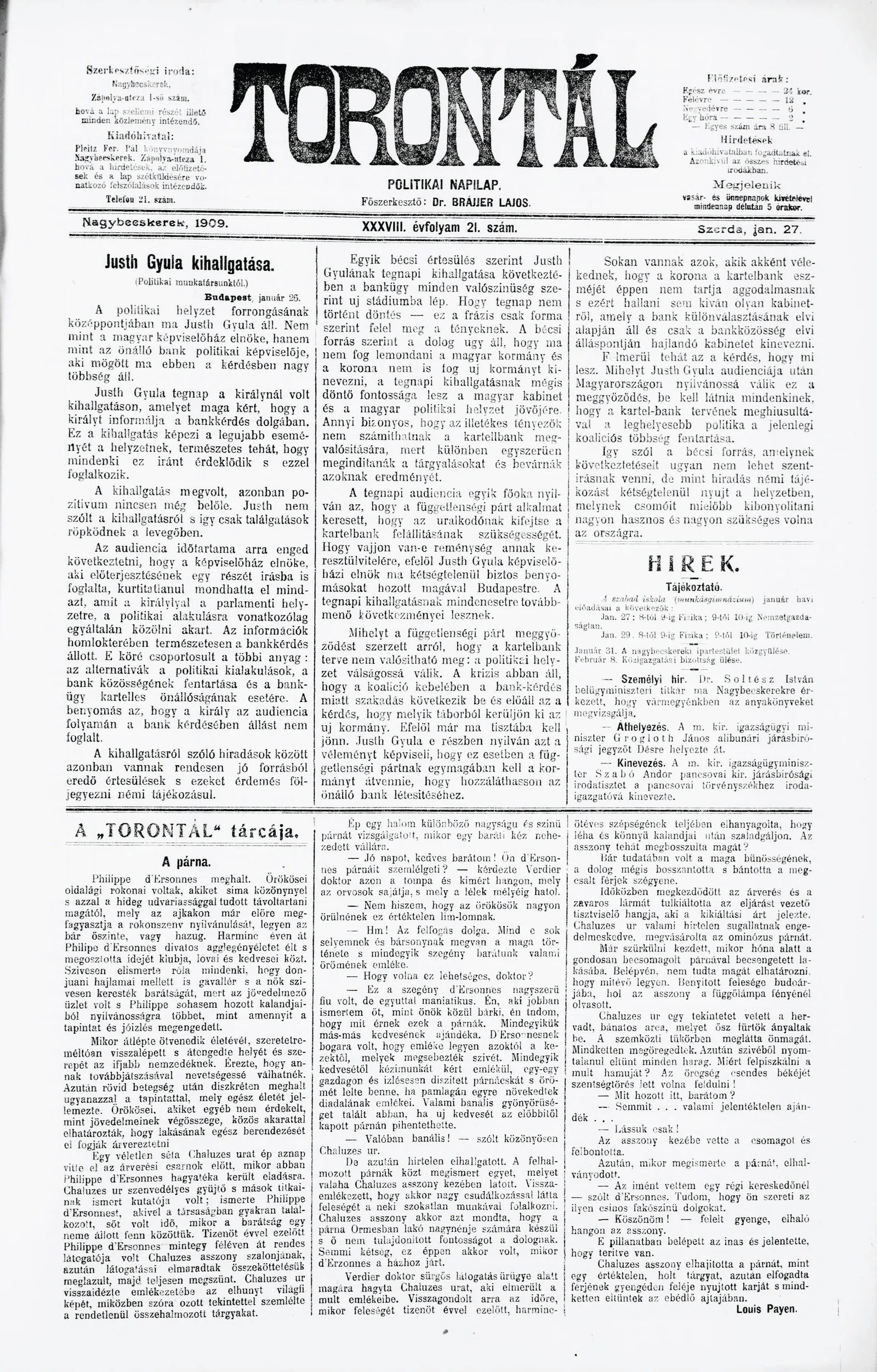 Torontál, 38. évf. 1909. január 27. 21. sz.