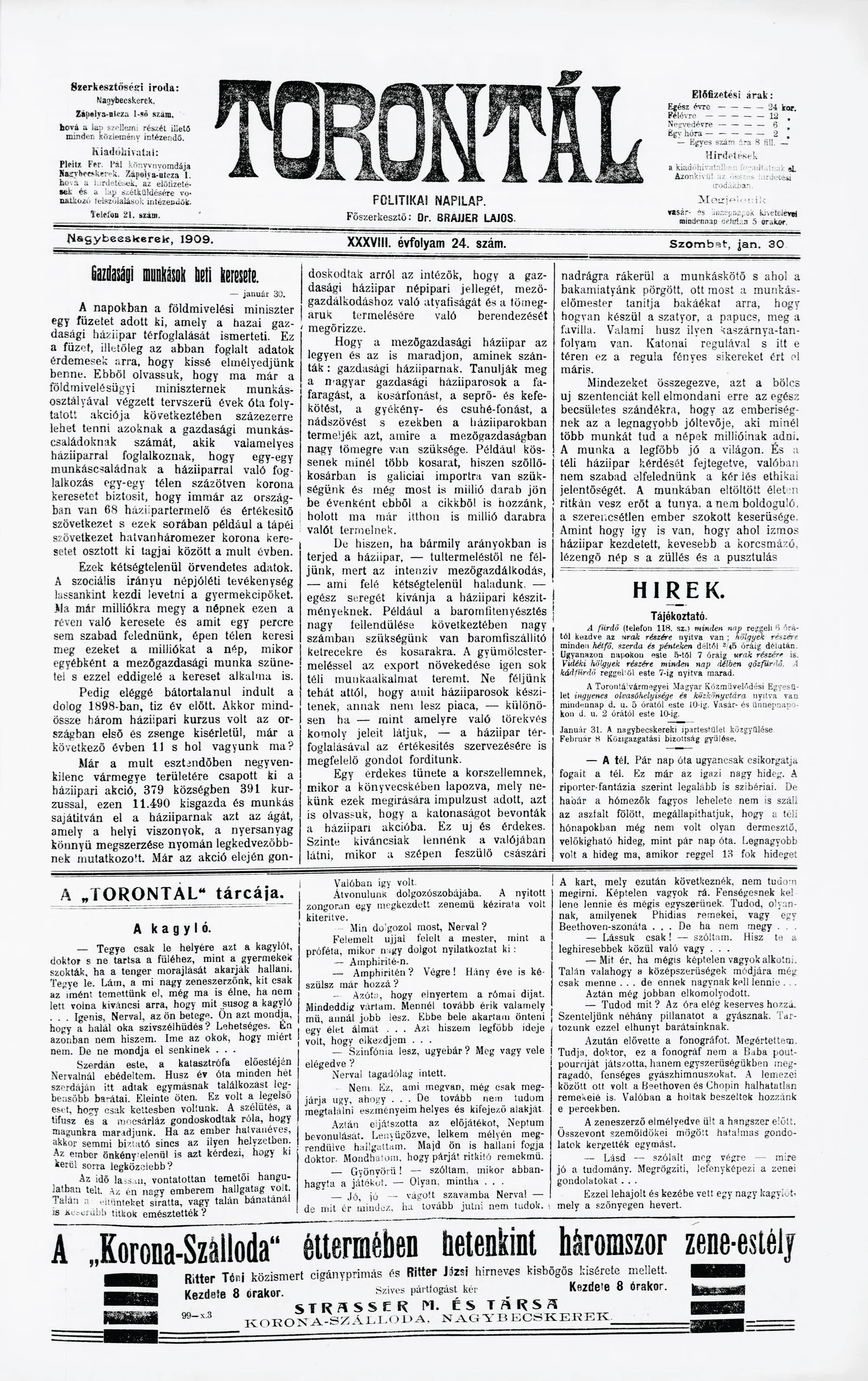 Torontál, 38. évf. 1909. január 30. 24. sz.
