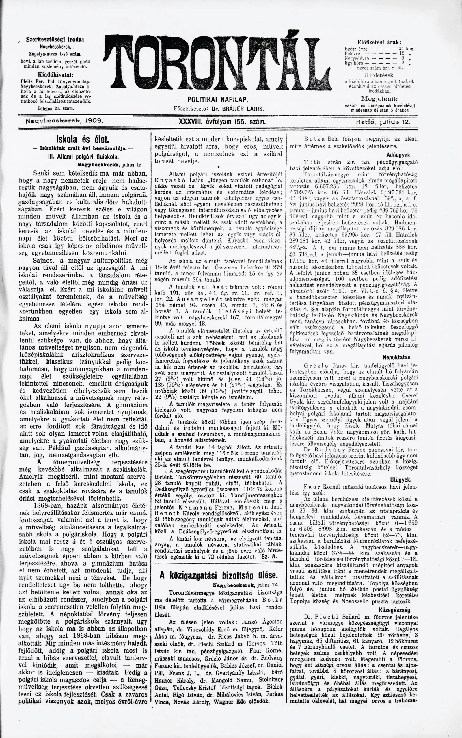 Torontál, 38. évf. 1909. július 12. 155. sz.