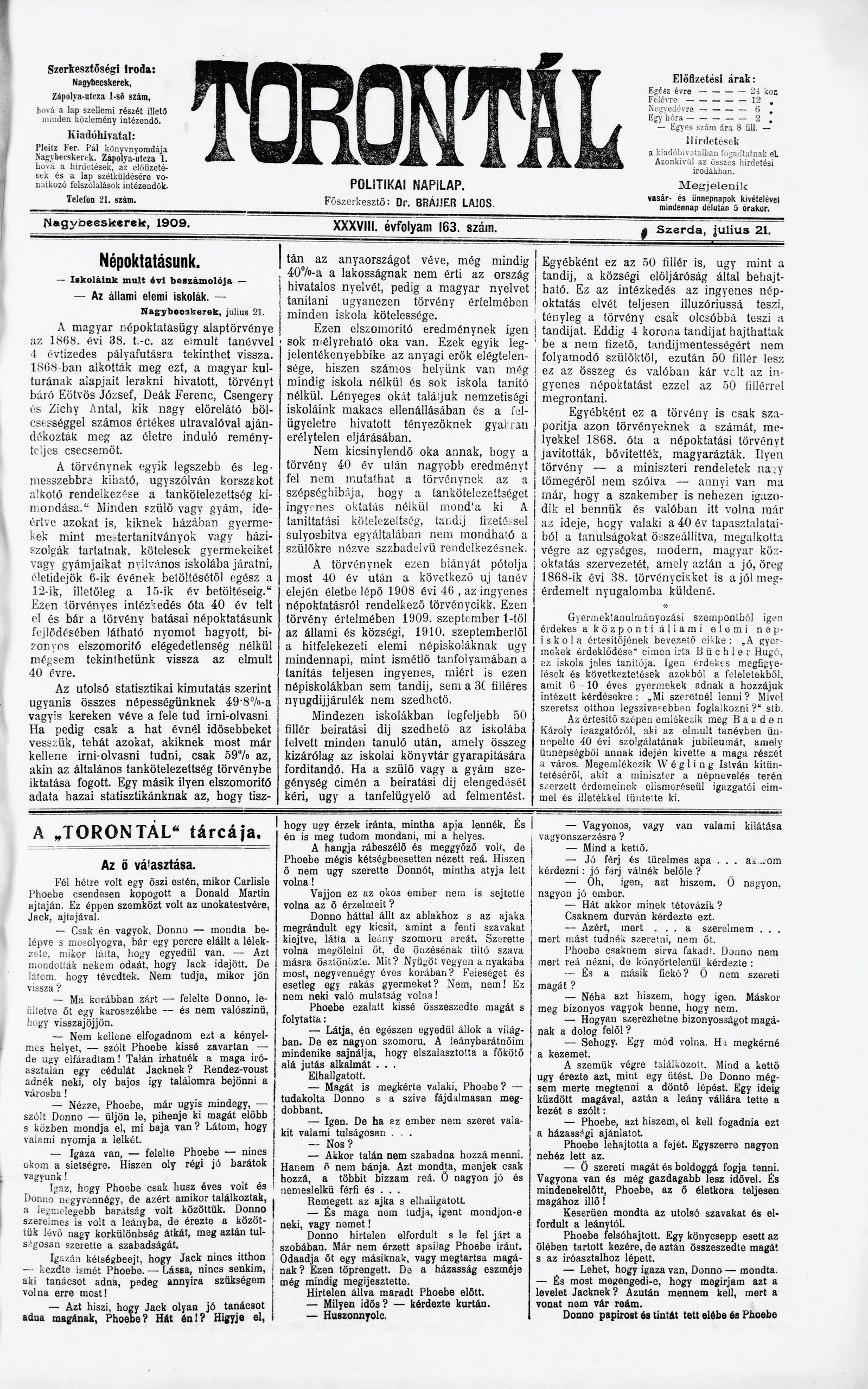 Torontál, 38. évf. 1909. július 21. 163. sz.