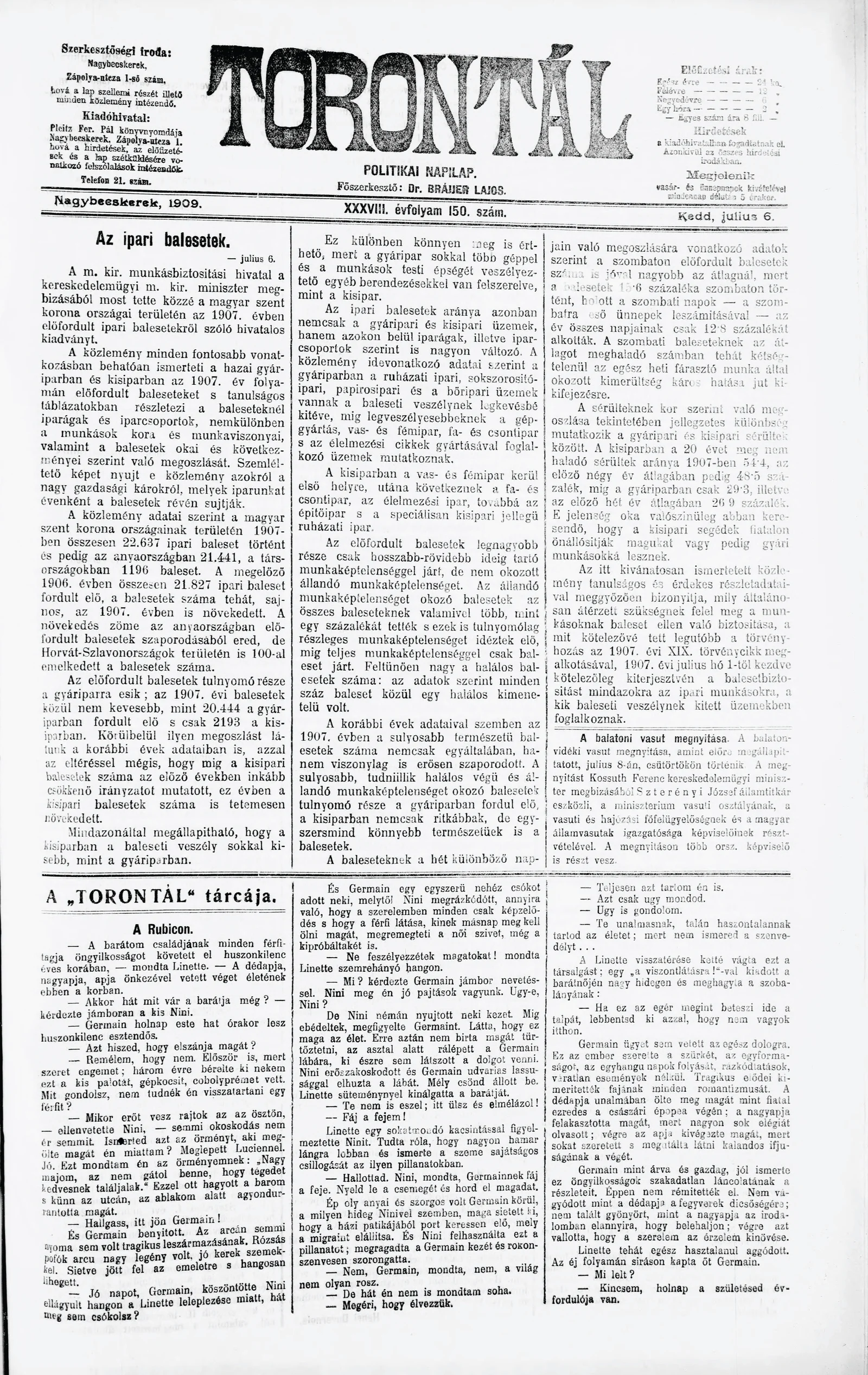 Torontál, 38. évf. 1909. július 6. 150. sz.