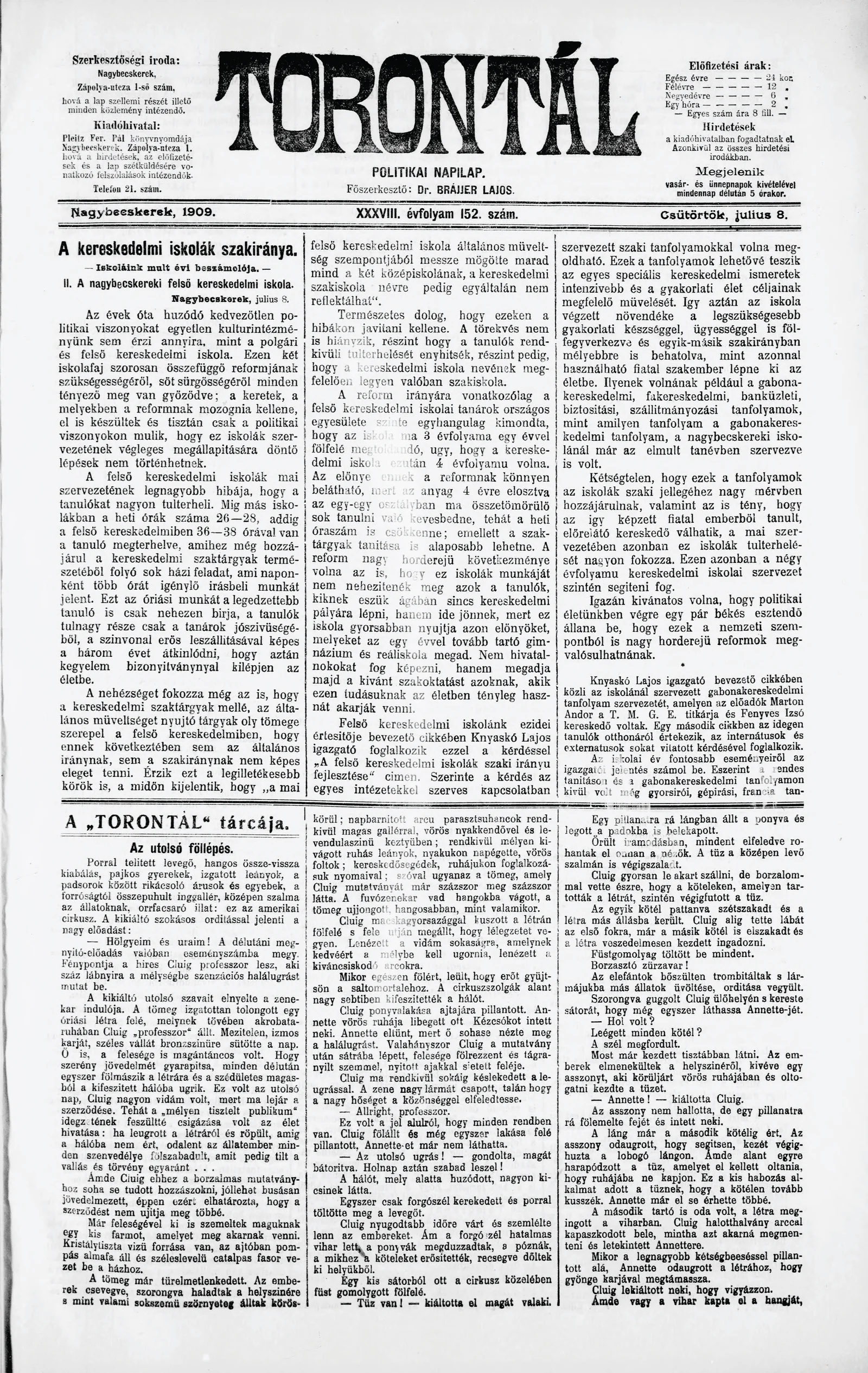 Torontál, 38. évf. 1909. július 8. 152. sz.