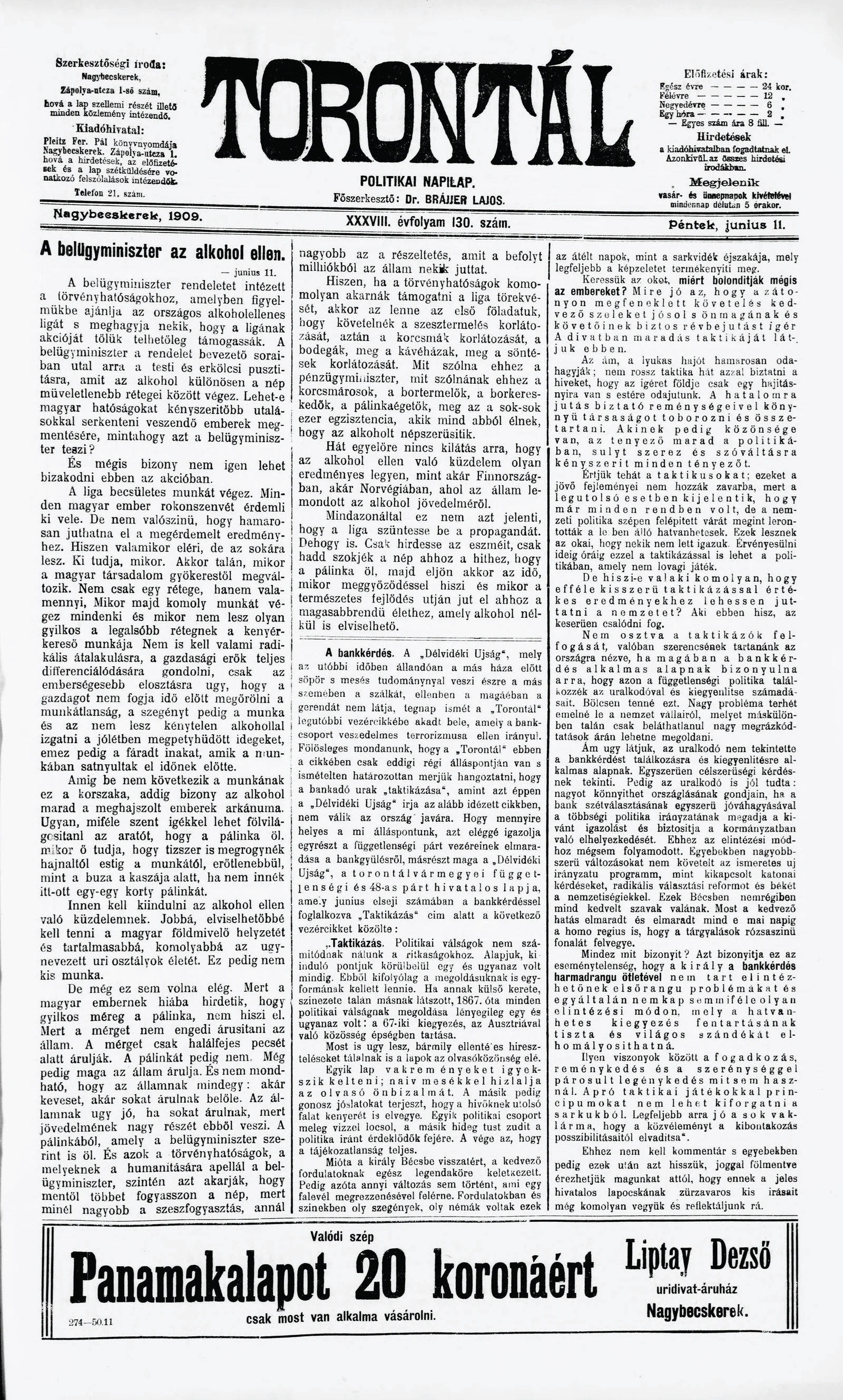 Torontál, 38. évf. 1909. június 11. 130. sz.
