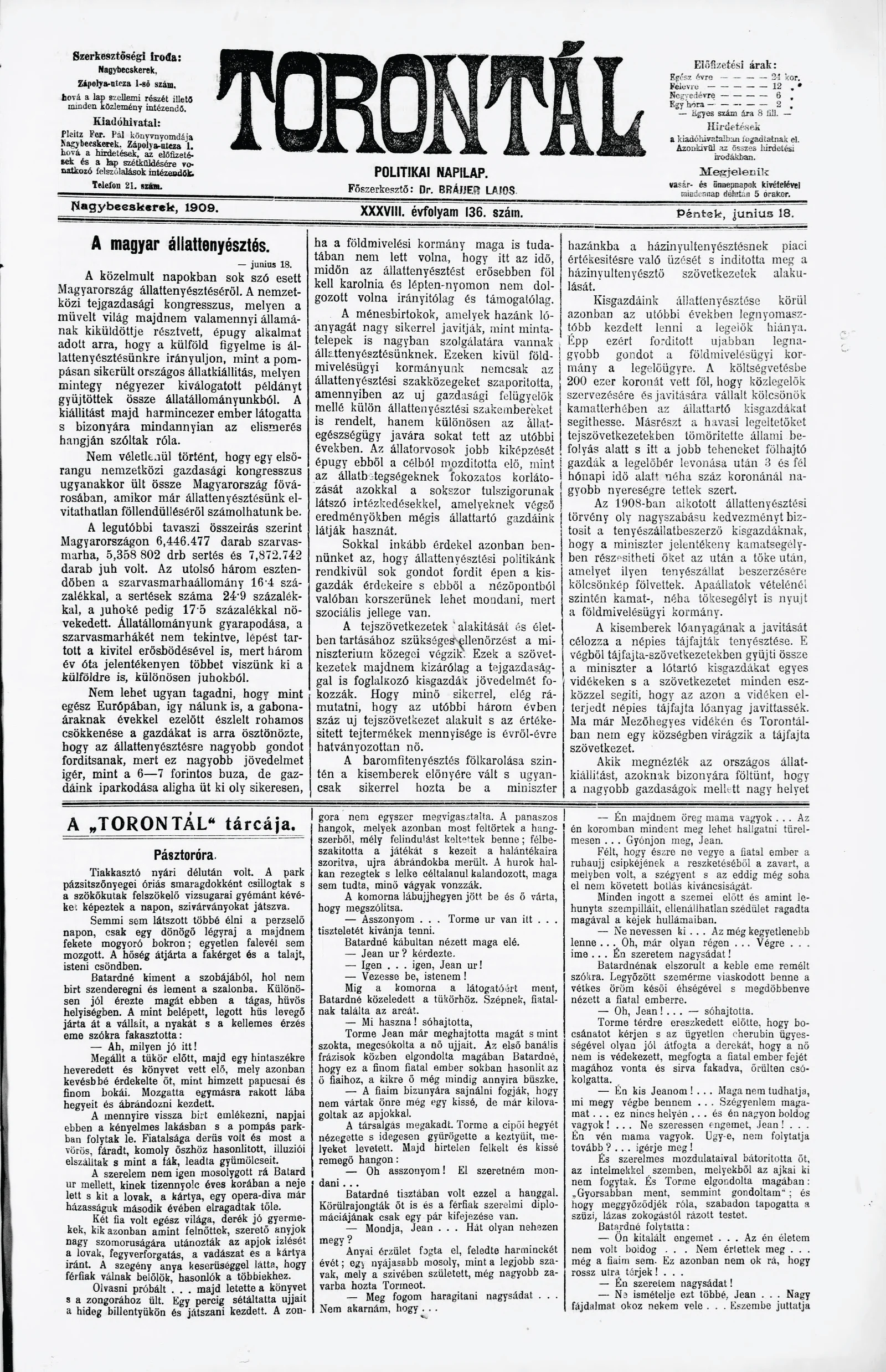 Torontál, 38. évf. 1909. június 18. 136. sz.
