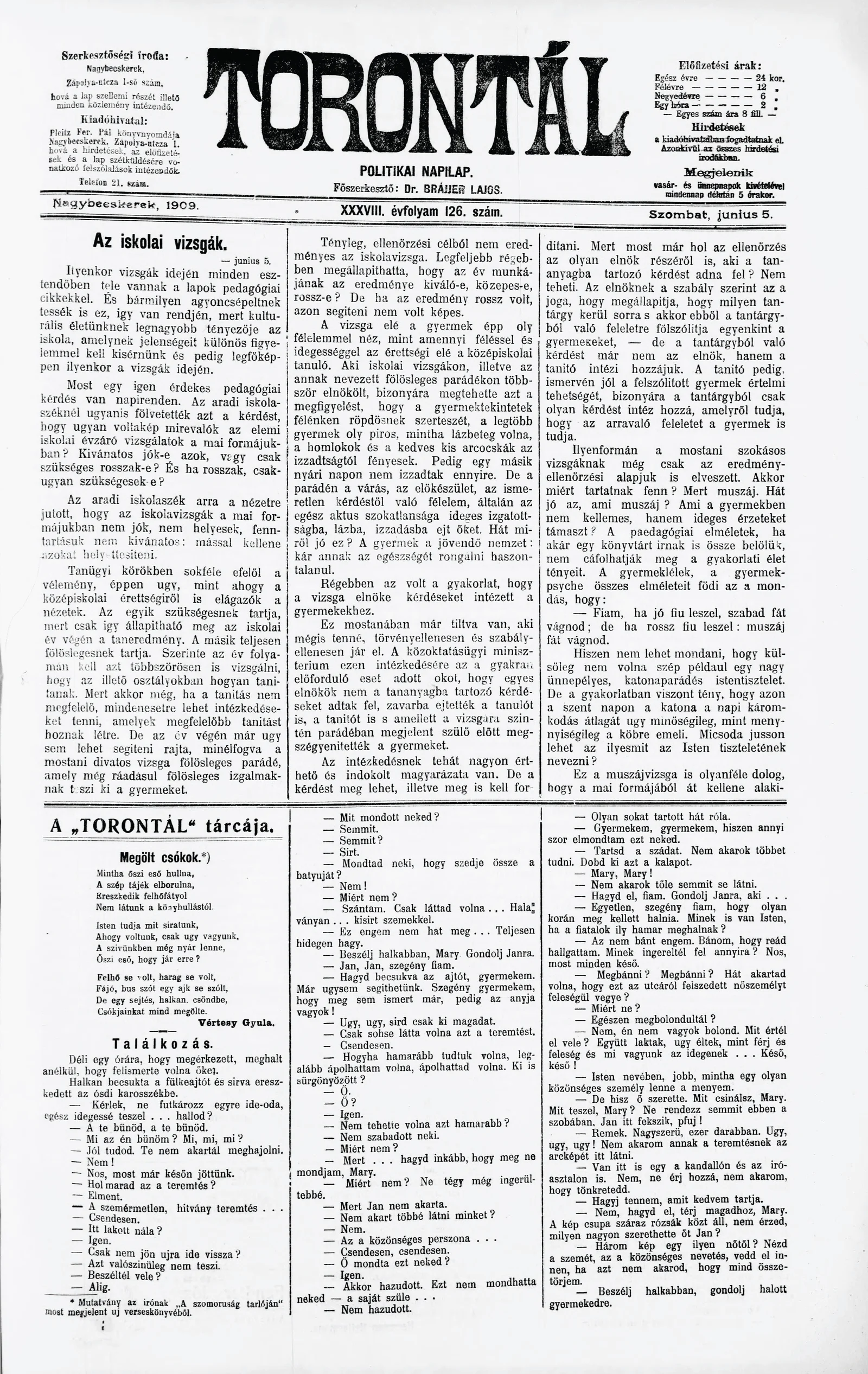 Torontál, 38. évf. 1909. június 5. 126. sz.