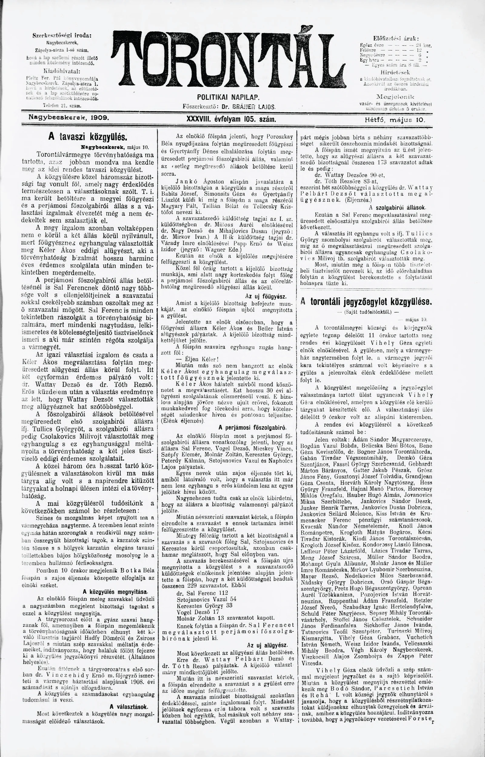 Torontál, 38. évf. 1909. május 10. 105. sz.