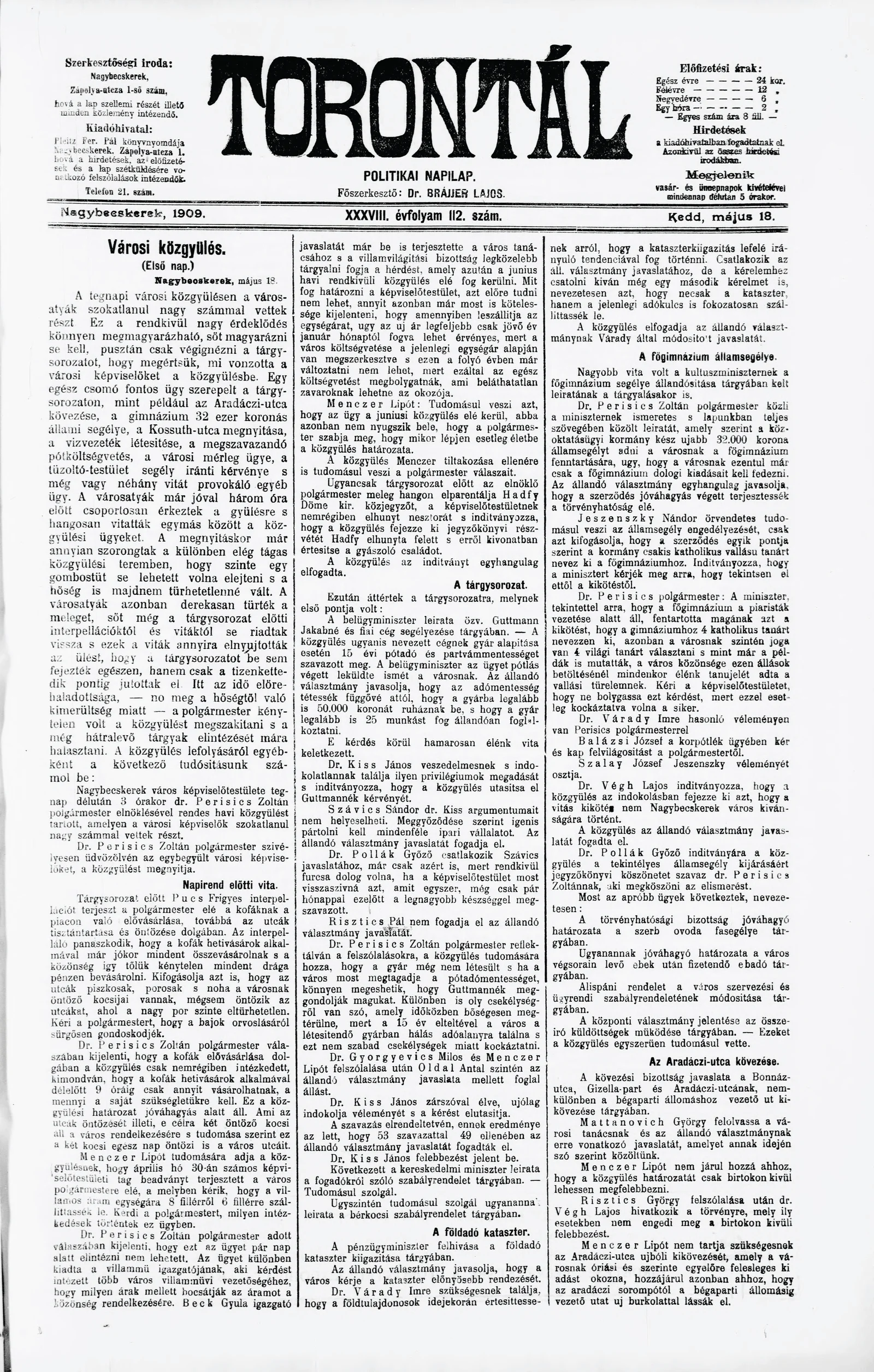 Torontál, 38. évf. 1909. május 18. 112. sz.