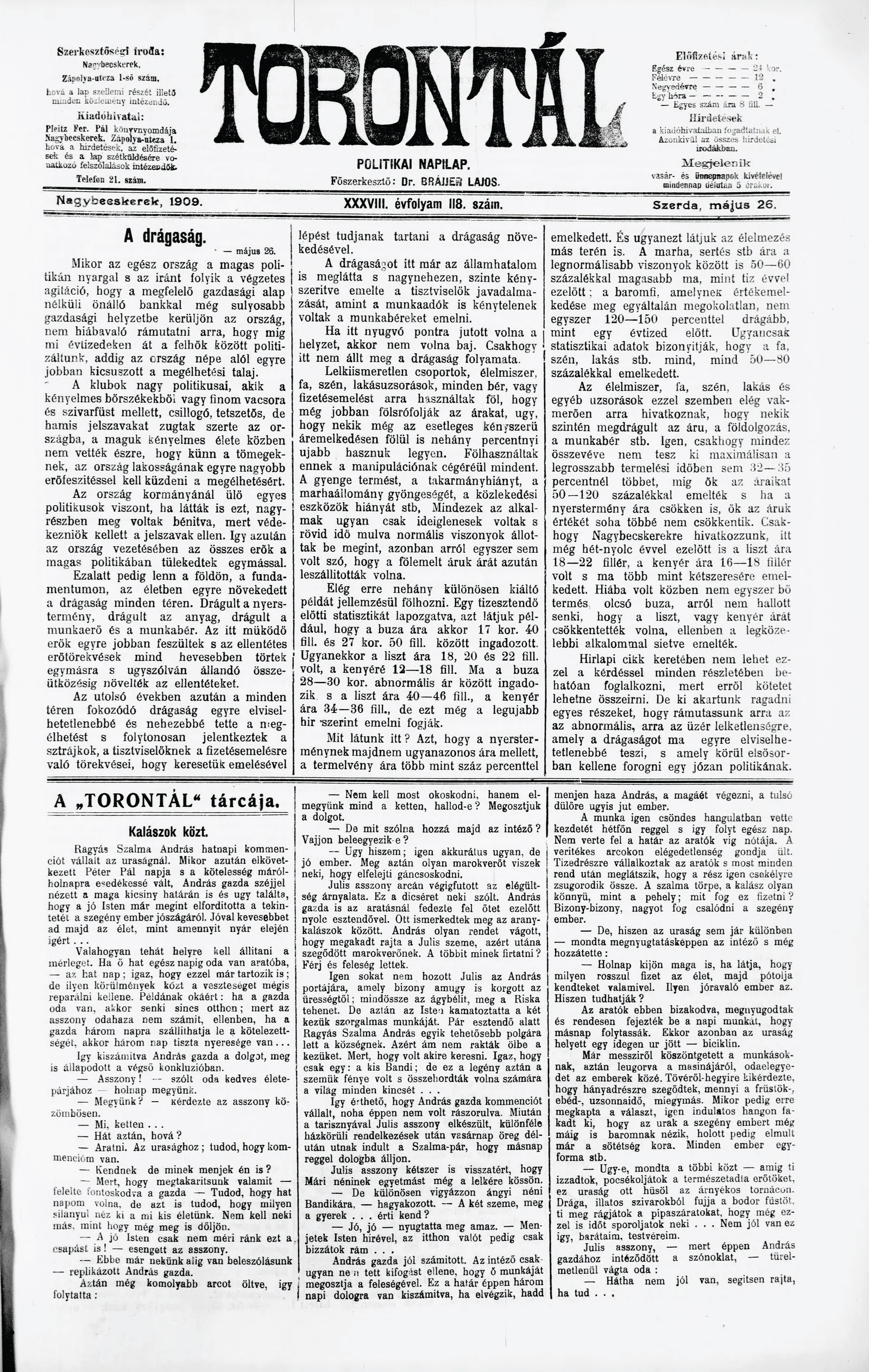 Torontál, 38. évf. 1909. május 26. 118. sz.