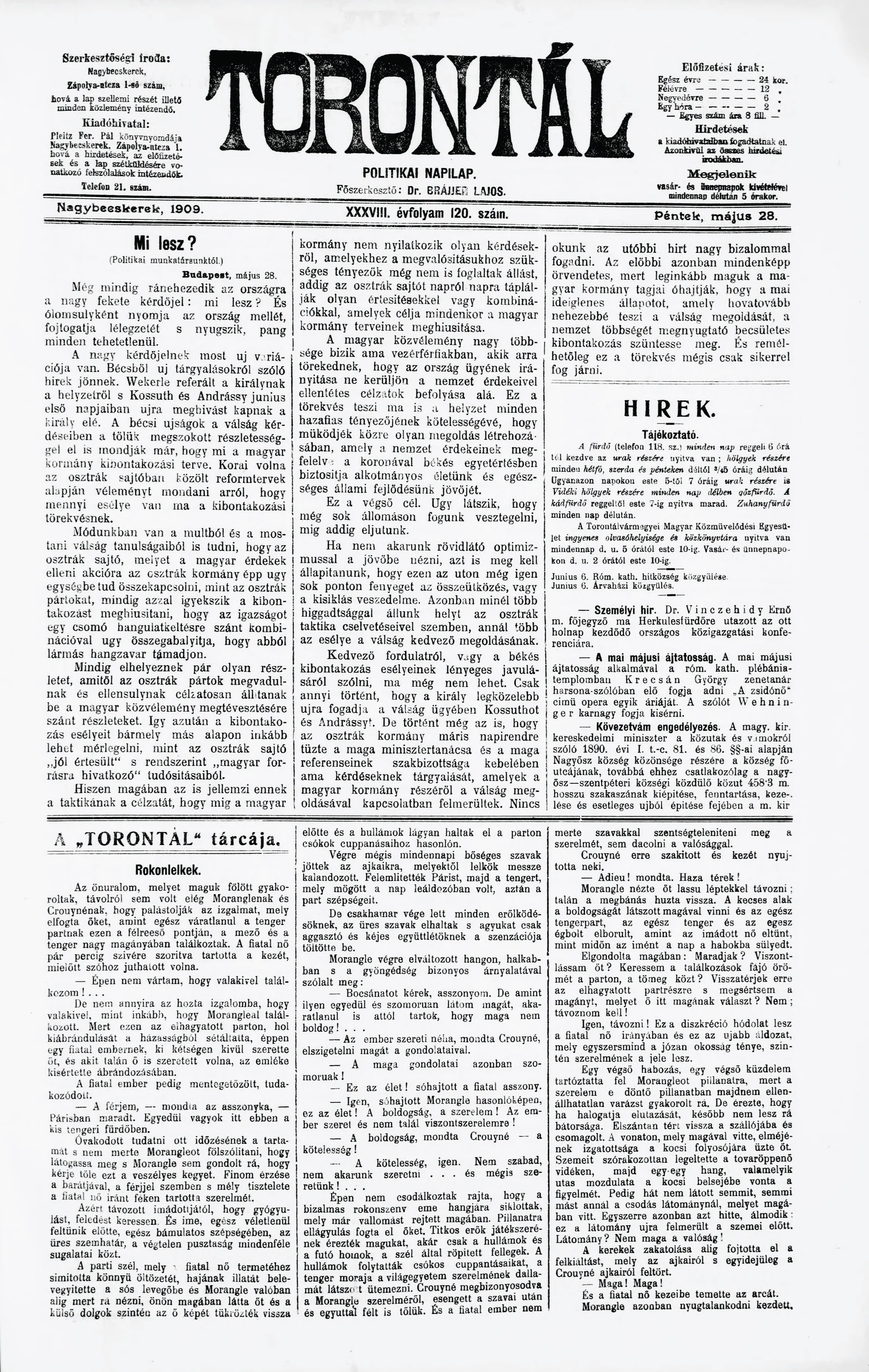 Torontál, 38. évf. 1909. május 28. 120. sz.