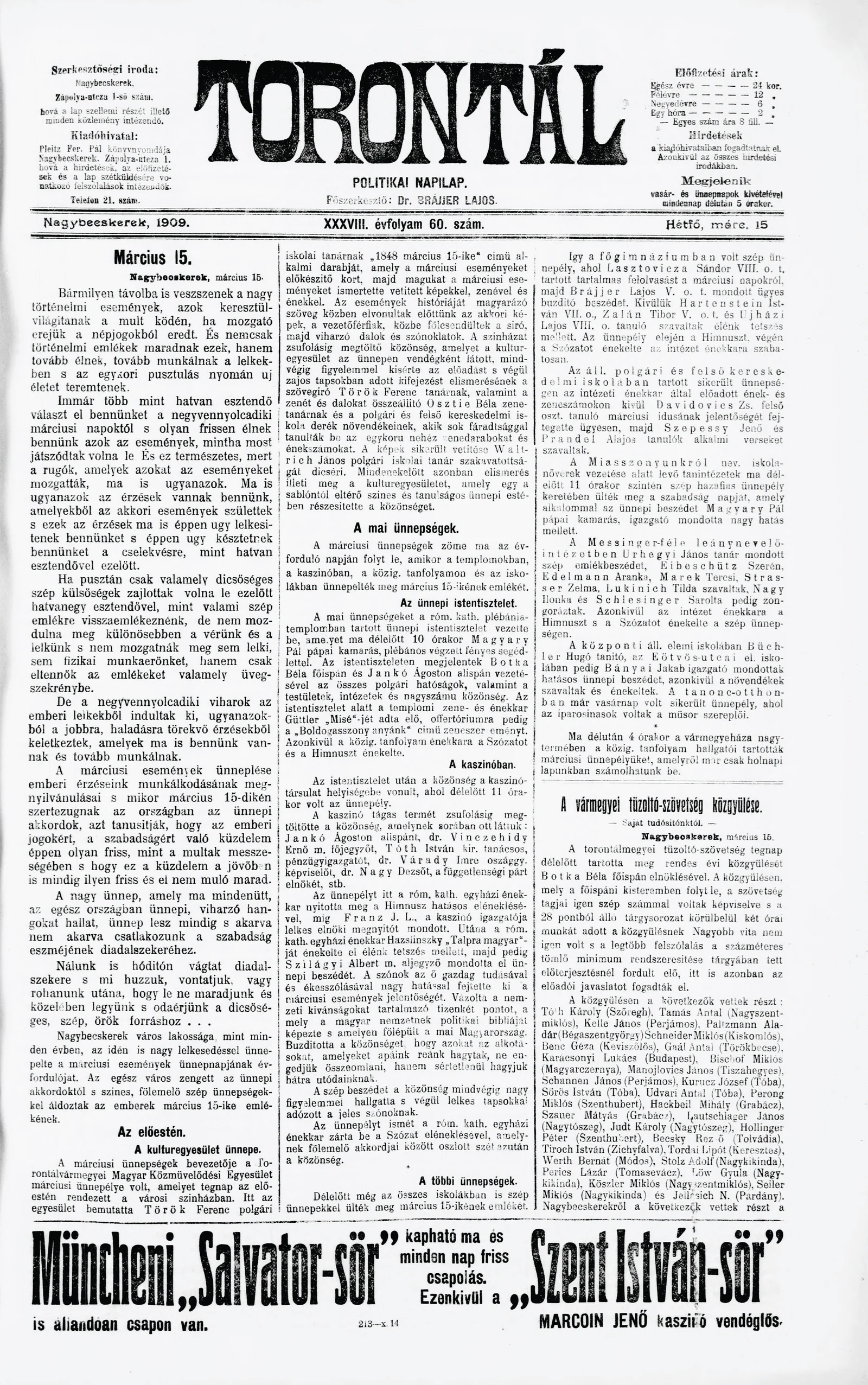 Torontál, 38. évf. 1909. március 15. 60. sz.