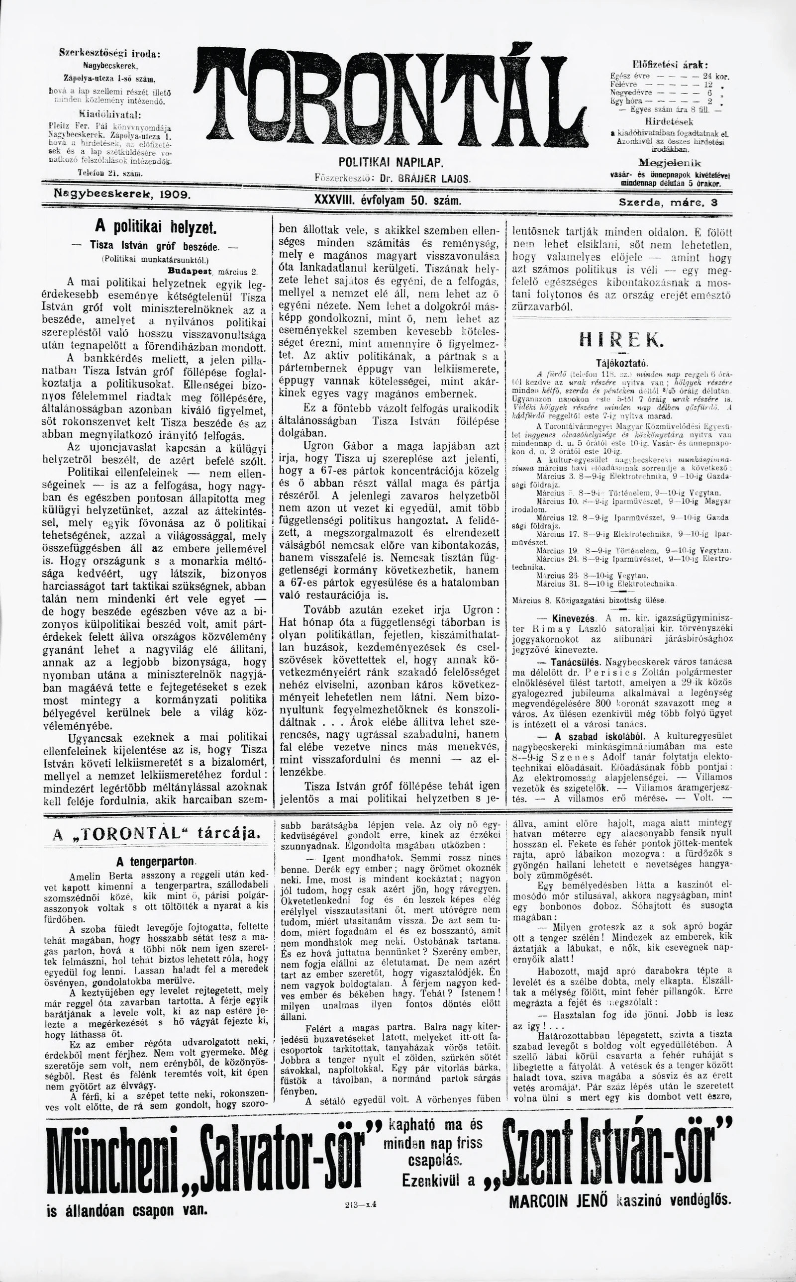 Torontál, 38. évf. 1909. március 3. 50. sz.