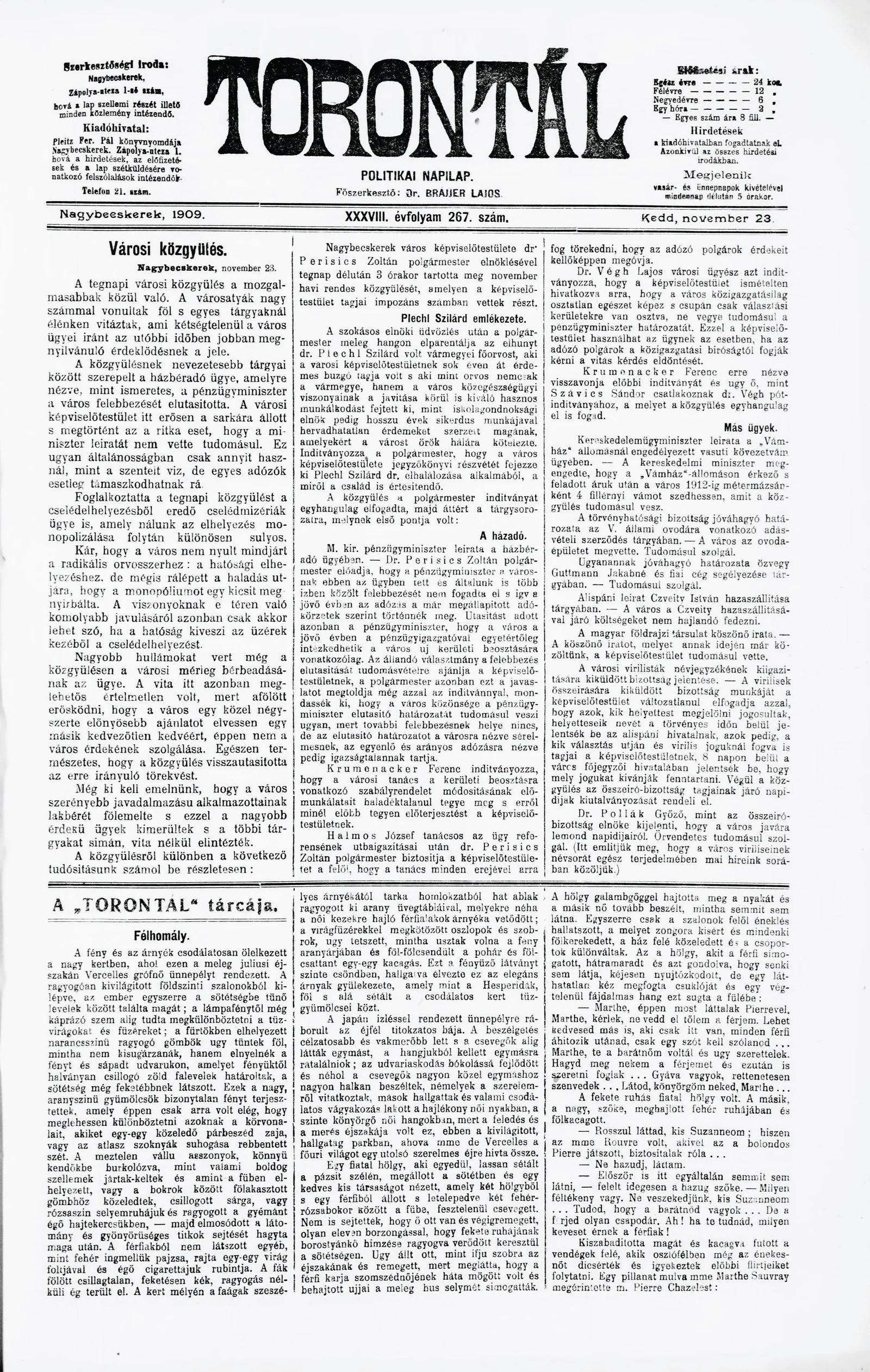 Torontál, 38. évf. 1909. november 23. 267. sz.