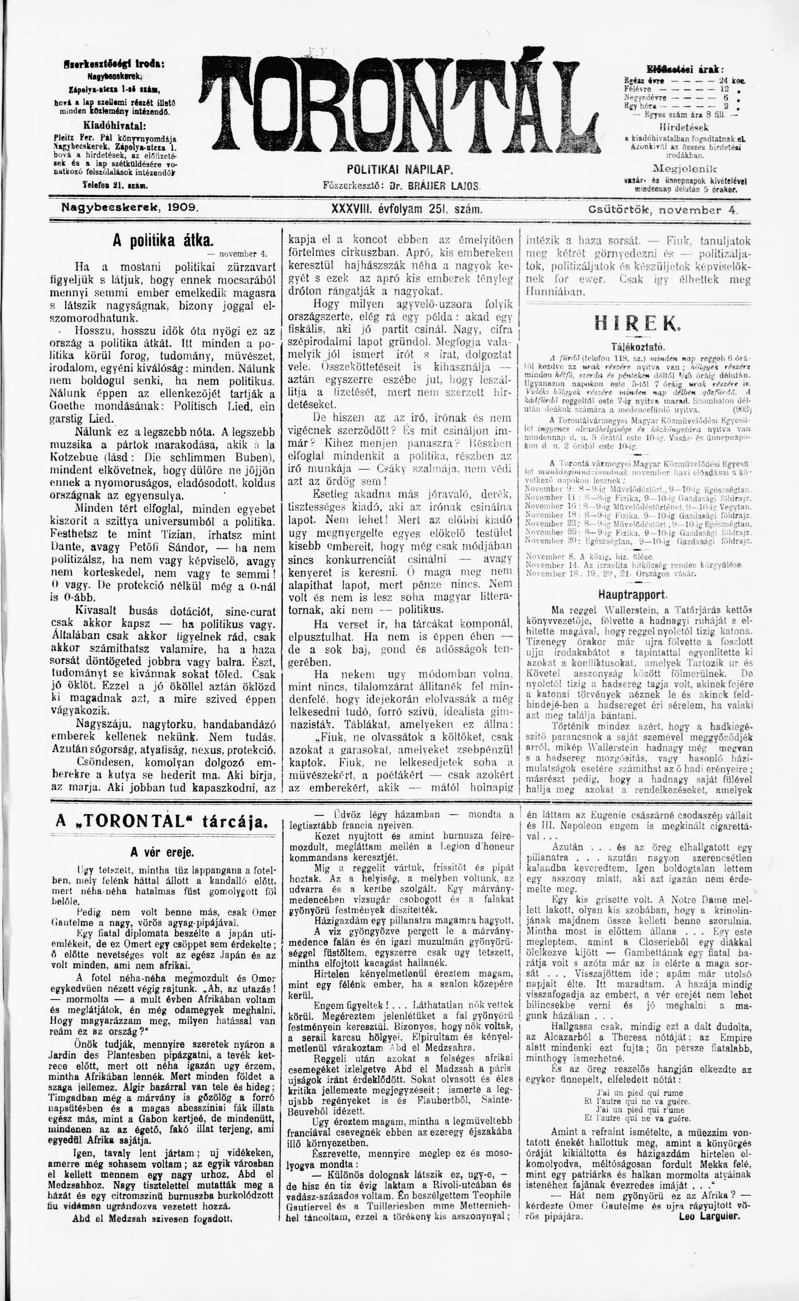 Torontál, 38. évf. 1909. november 4. 251. sz.