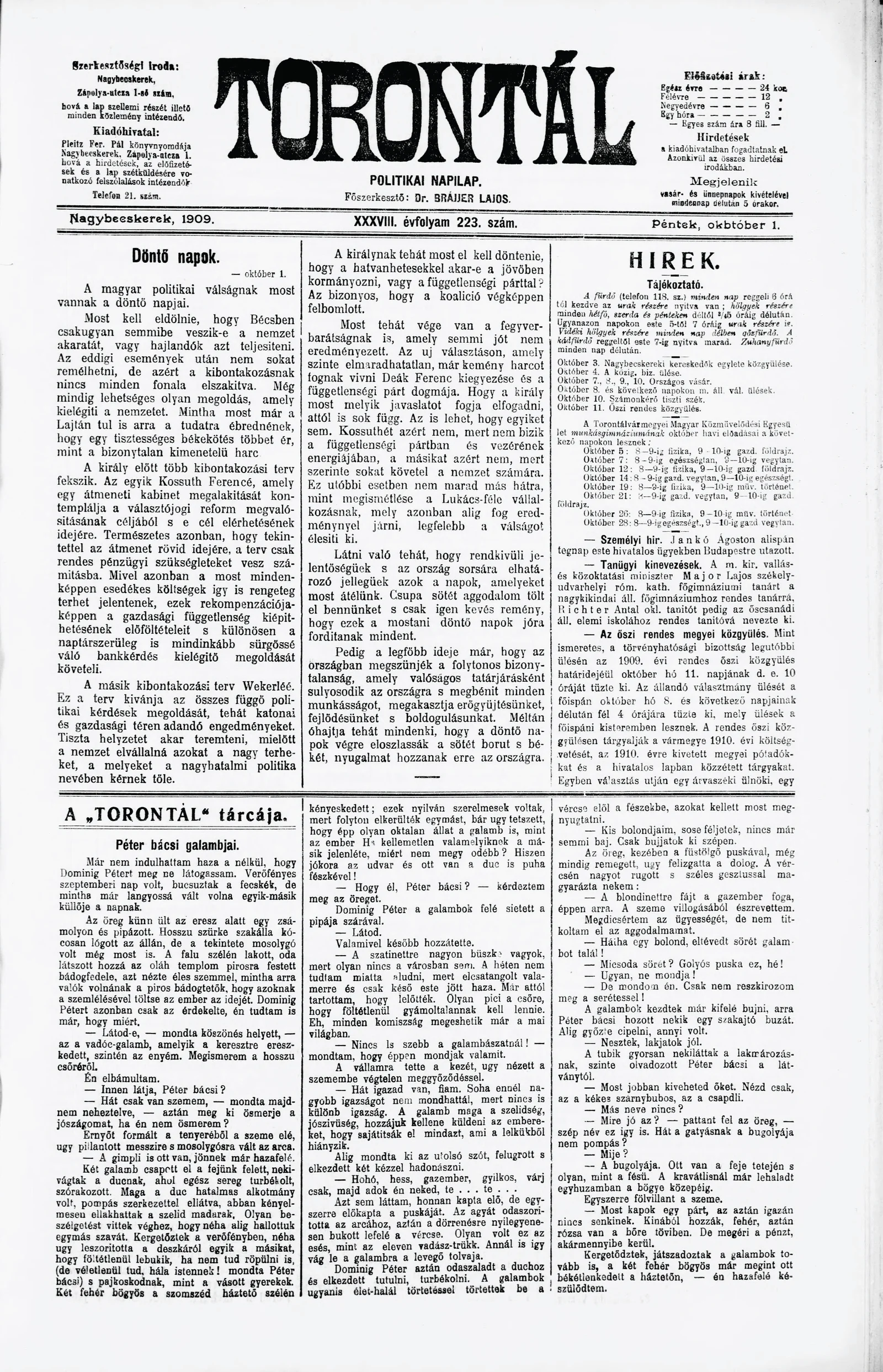 Torontál, 38. évf. 1909. október 1. 223. sz.