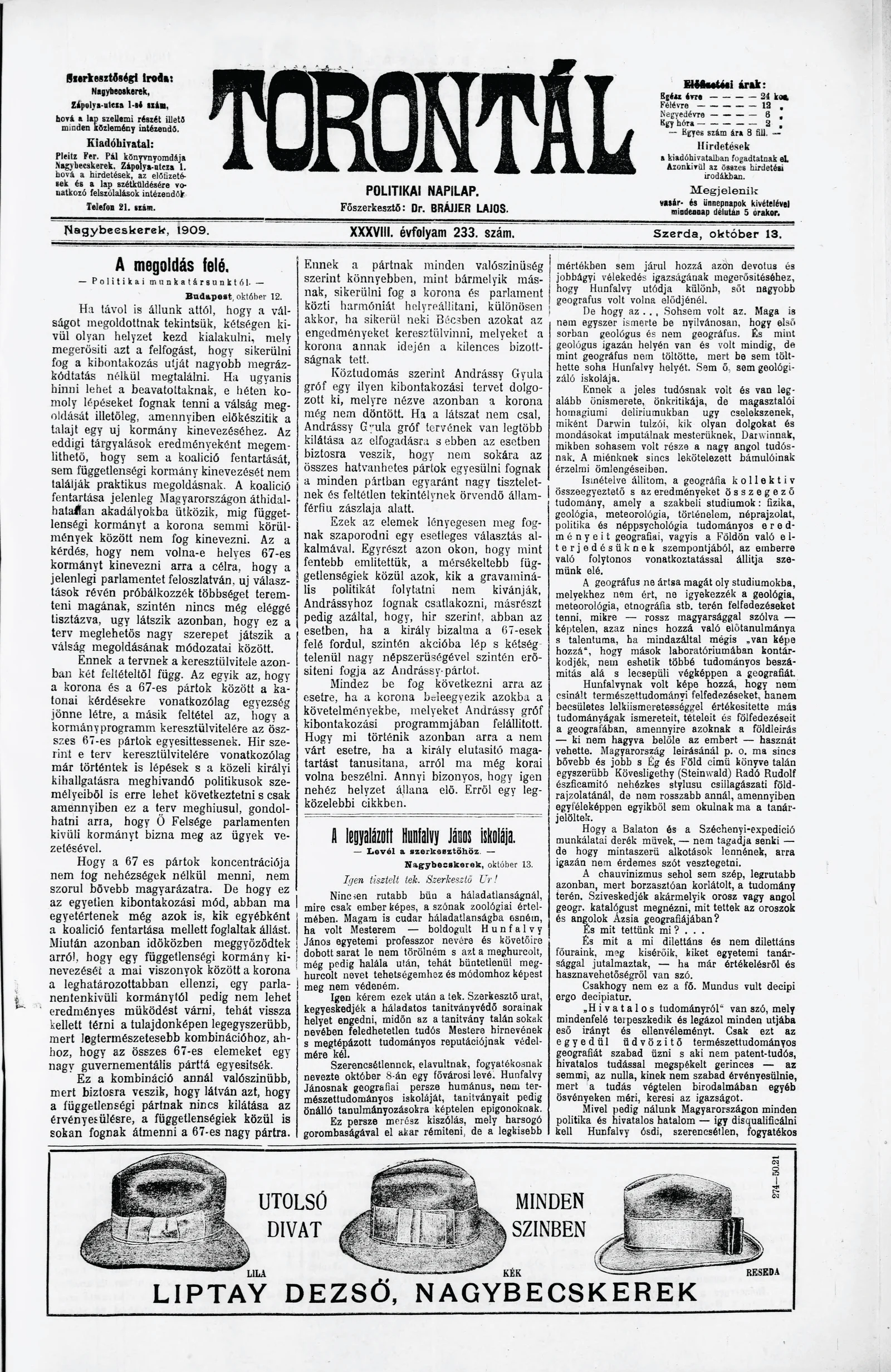 Torontál, 38. évf. 1909. október 13. 233. sz.