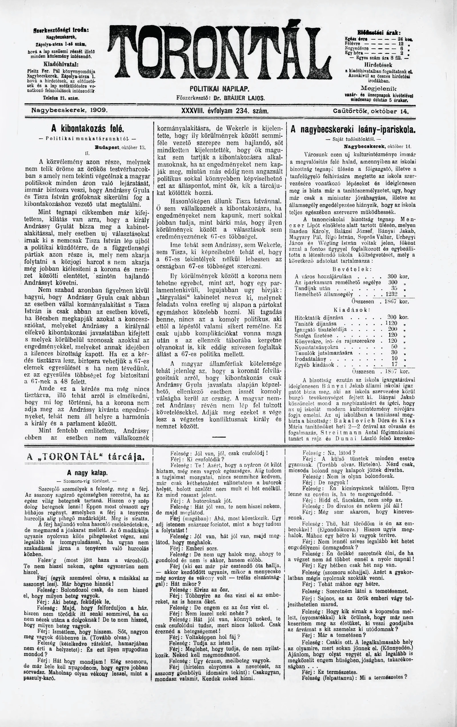 Torontál, 38. évf. 1909. október 14. 234. sz.