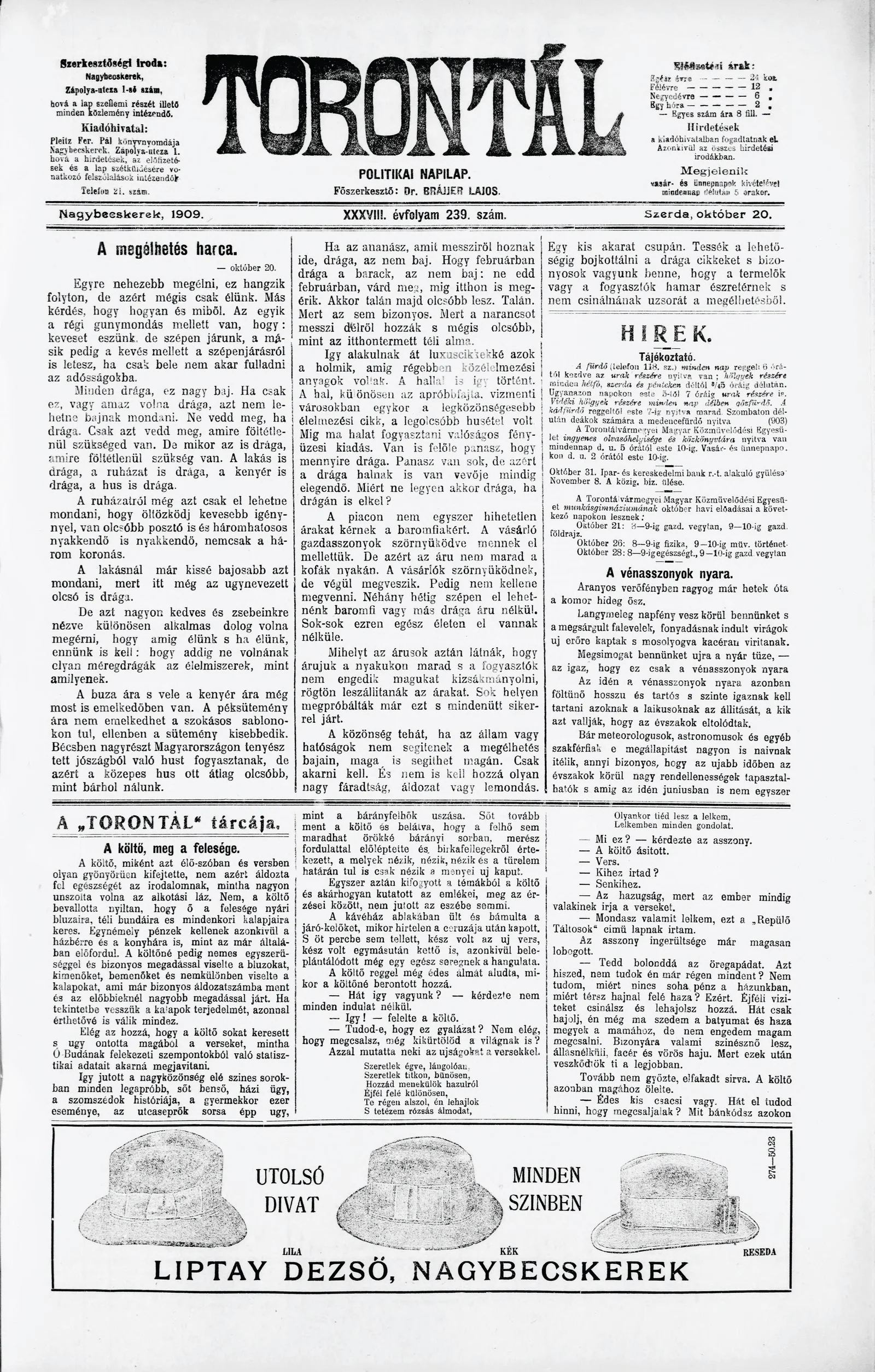 Torontál, 38. évf. 1909. október 20. 239. sz.