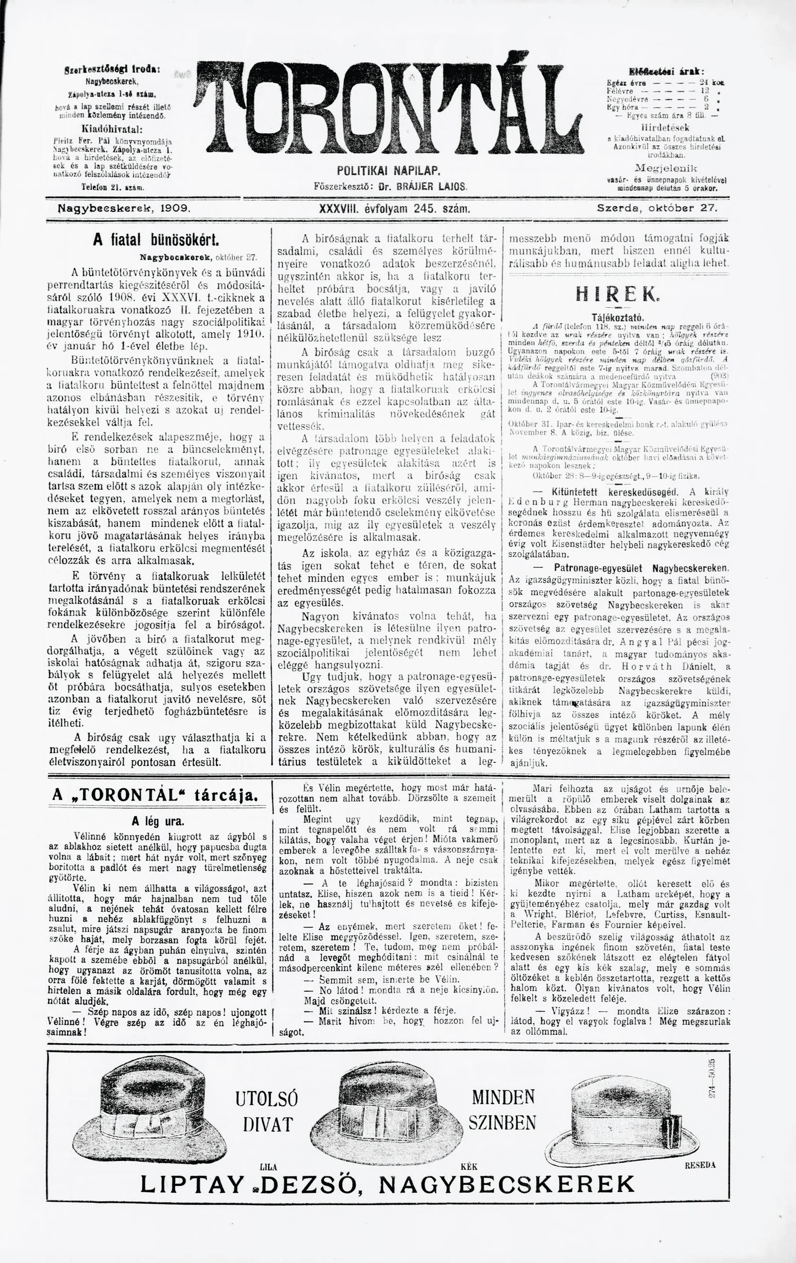 Torontál, 38. évf. 1909. október 27. 245. sz.