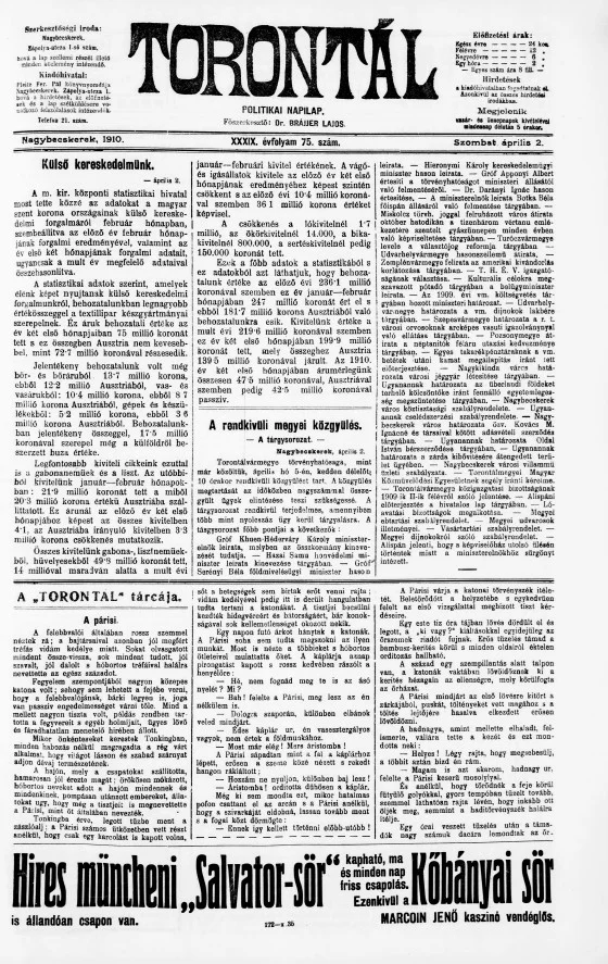 Torontál, 39. évf. 1910. április 2. 75. sz.