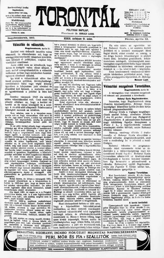 Torontál, 39. évf. 1910. április 22. 91. sz.