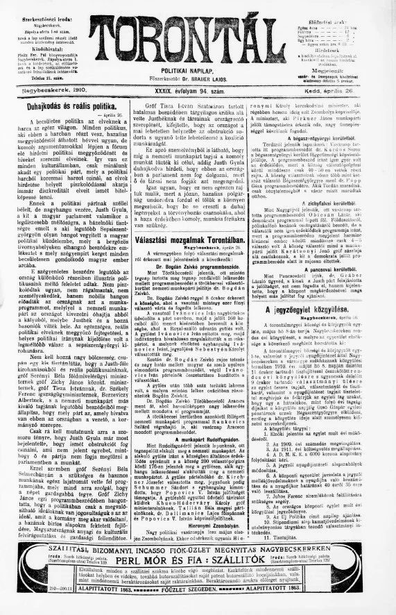 Torontál, 39. évf. 1910. április 26. 94. sz.