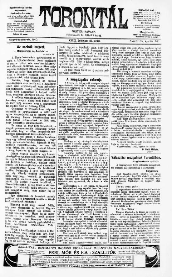 Torontál, 39. évf. 1910. április 28. 96. sz.