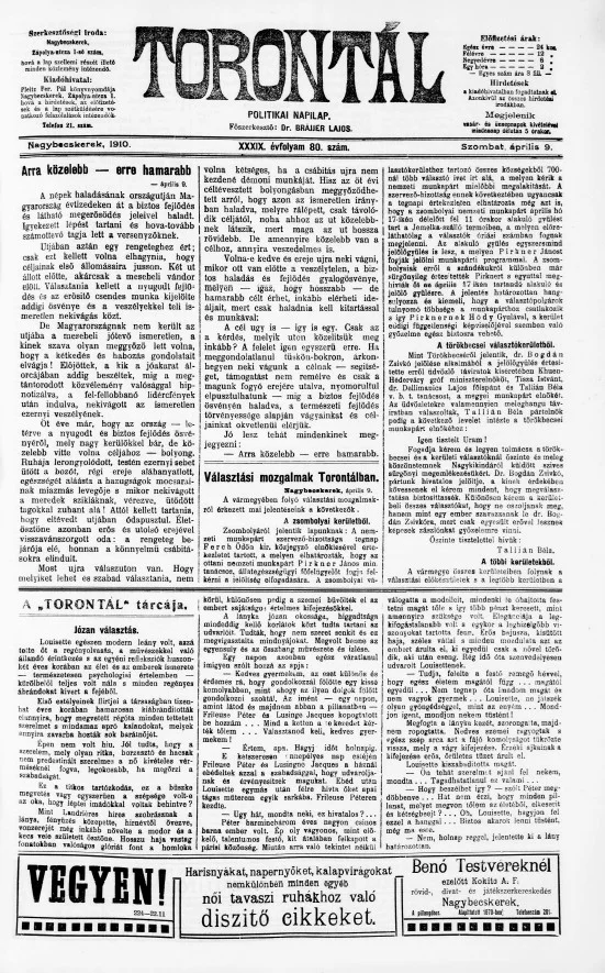 Torontál, 39. évf. 1910. április 9. 80. sz.