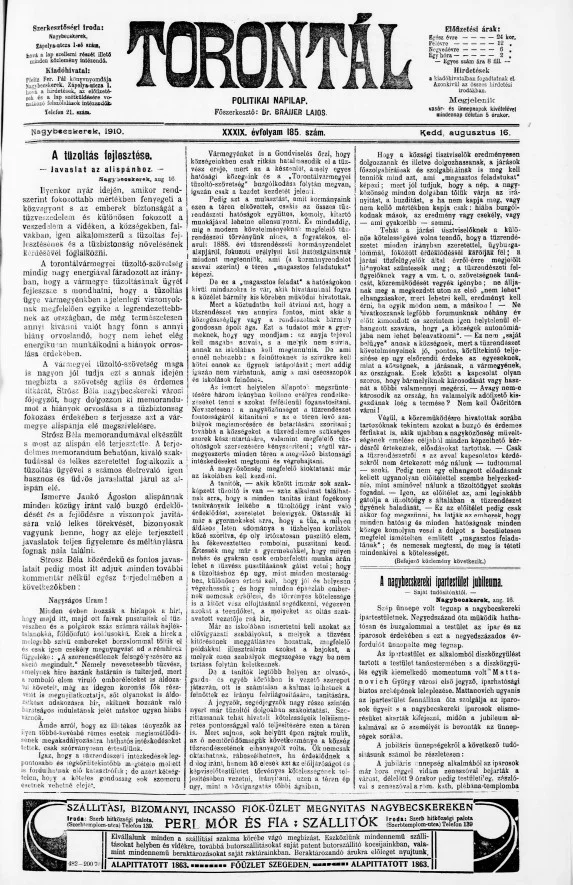 Torontál, 39. évf. 1910. augusztus 16. 185. sz.