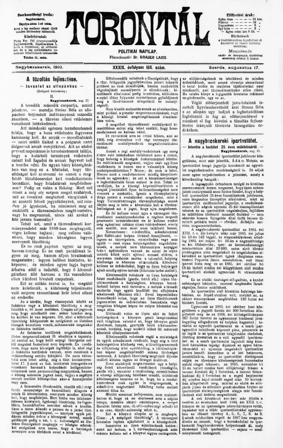 Torontál, 39. évf. 1910. augusztus 17. 186. sz.