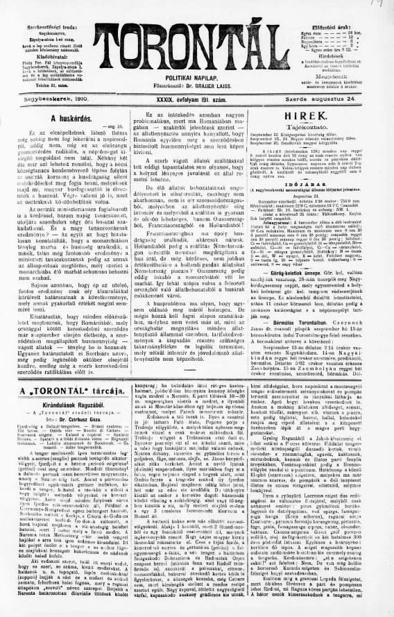 Torontál, 39. évf. 1910. augusztus 24. 191. sz.