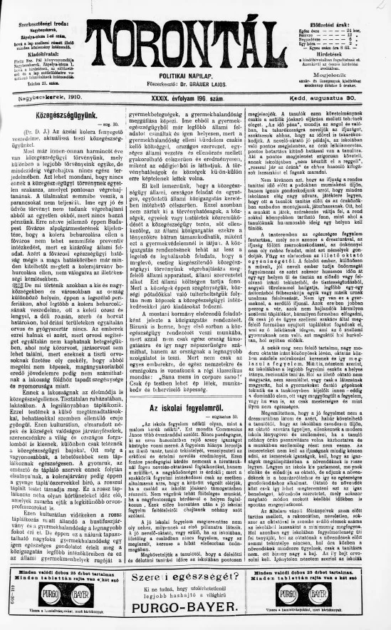 Torontál, 39. évf. 1910. augusztus 30. 196. sz.