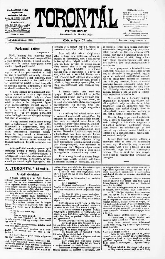 Torontál, 39. évf. 1910. augusztus 5. 177. sz.