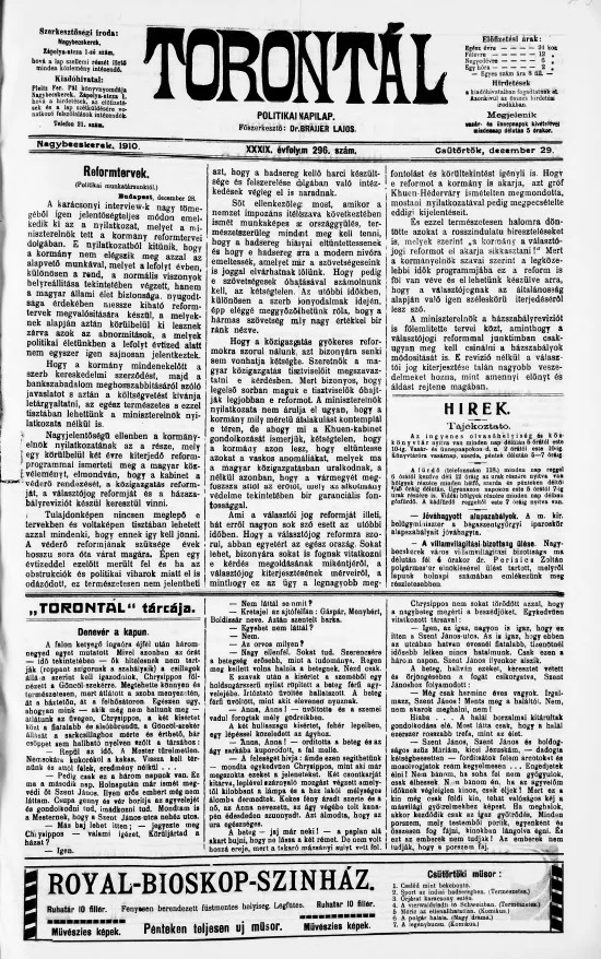 Torontál, 39. évf. 1910. december 29. 296. sz.