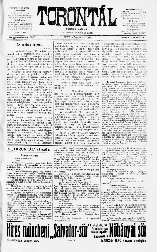 Torontál, 39. évf. 1910. február 23. 43. sz.