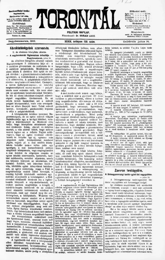 Torontál, 39. évf. 1910. július 14. 158. sz.