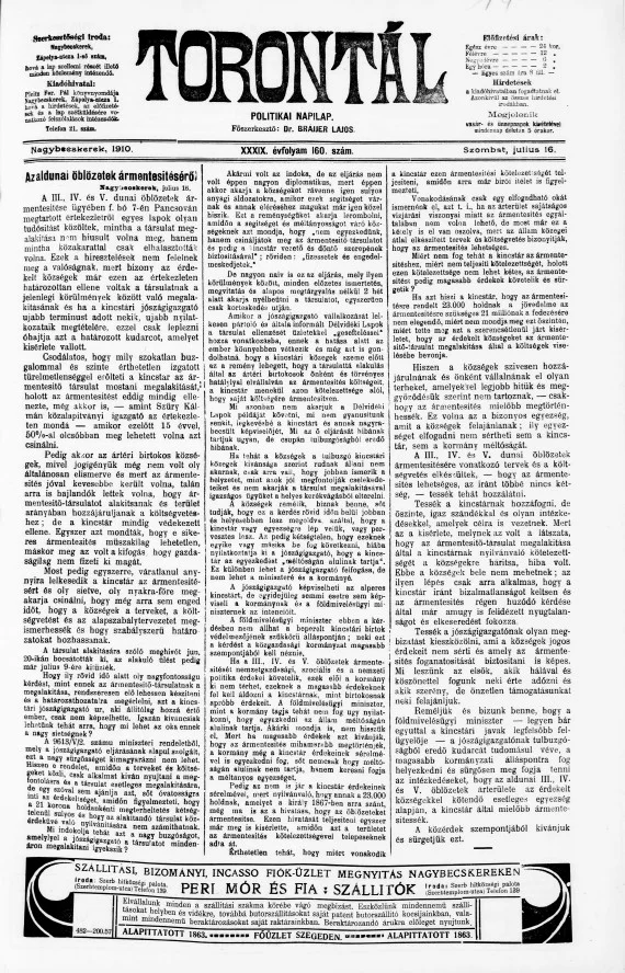 Torontál, 39. évf. 1910. július 16. 160. sz.
