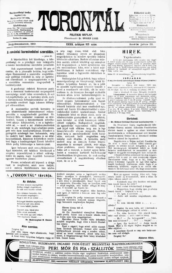 Torontál, 39. évf. 1910. július 20. 163. sz.