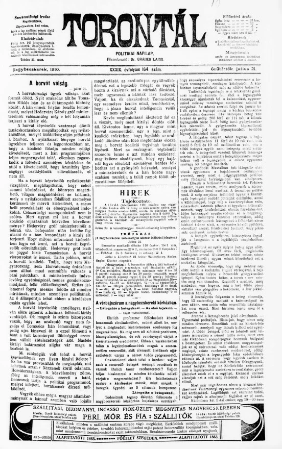 Torontál, 39. évf. 1910. július 21. 164. sz.