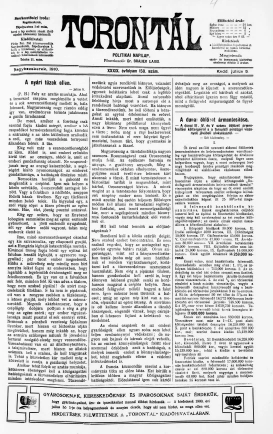 Torontál, 39. évf. 1910. július 5. 150. sz.
