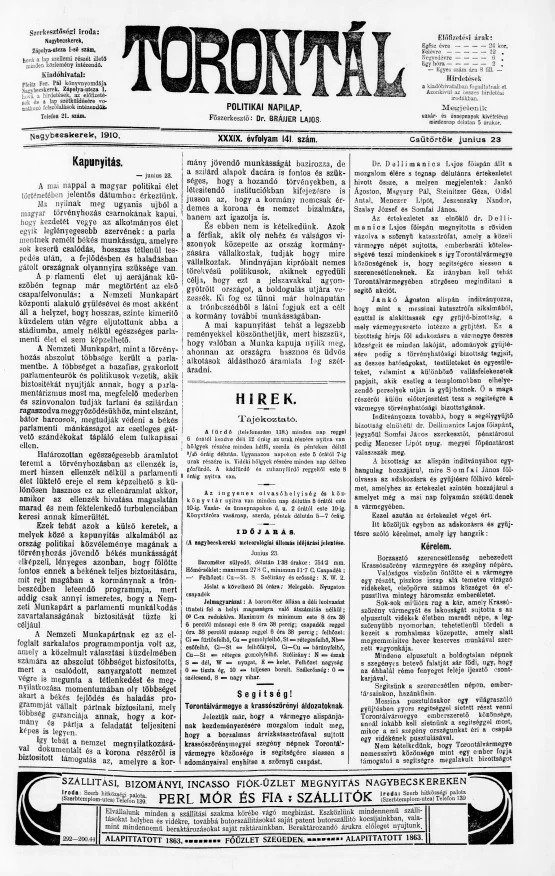 Torontál, 39. évf. 1910. június 23. 141. sz.