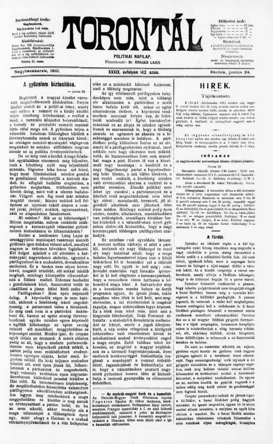 Torontál, 39. évf. 1910. június 24. 142. sz.