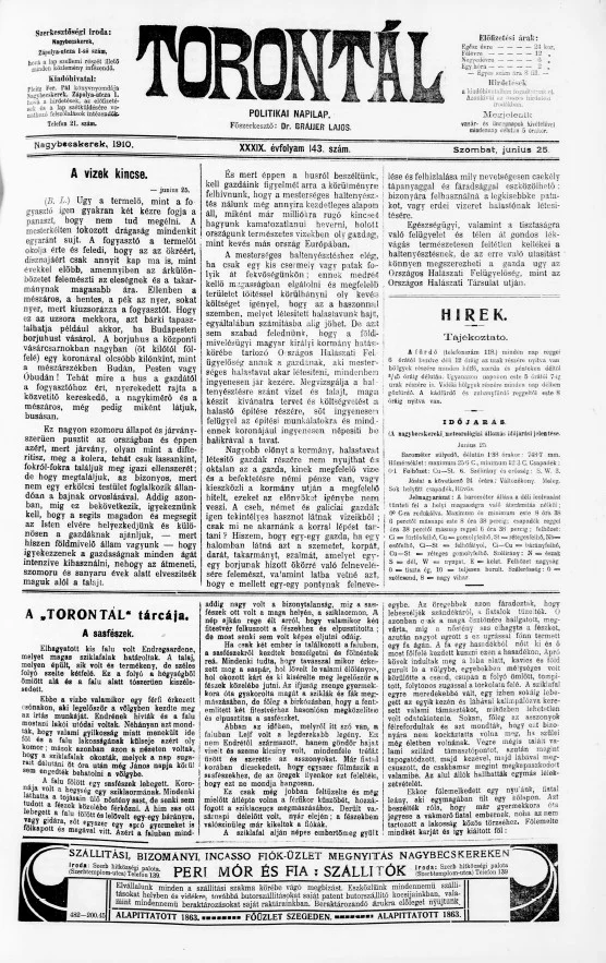 Torontál, 39. évf. 1910. június 25. 143. sz.